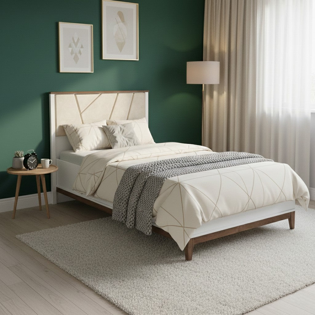 Alaçatı Genç Odası, beyazın ferahlığını ceviz dokusunun sıcaklığıyla birleştirerek odanızda dengeli bir atmosfer yaratır. Alaçatı Amortisörlü Karyola geniş iç hacme sahip bazası sayesinde, odanızdaki kalabalığı ortadan kaldırarak ferah ve düzenli bir görünüm sağlar. Modern geometrik desenli başlığı ve fonksiyonel yapısı, hem görsel bir şölen hem de akıllı bir saklama çözümü sunar.