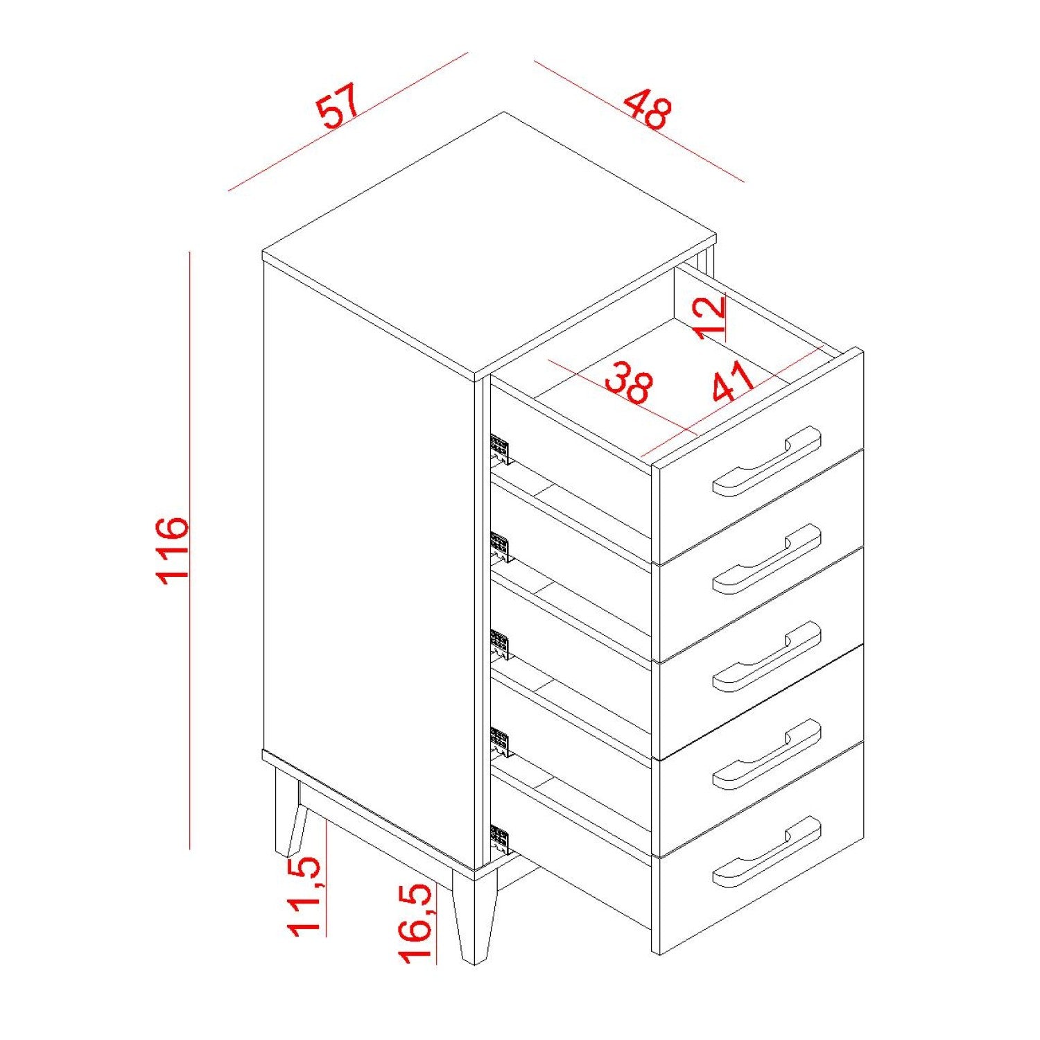 * Ölçüler: Genişlik:57 cm | Derinlik:48 cm | Yükseklik:116 cm