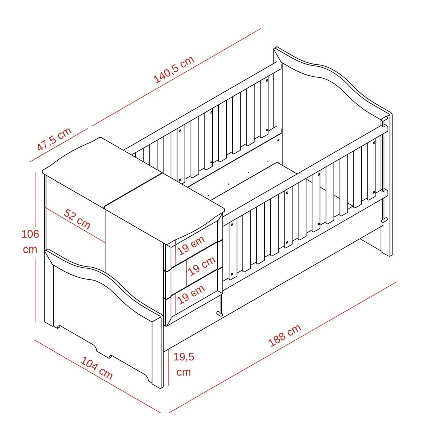 Classy Krem Büyüyen Beşik 80x130 cm Karyola 80x180 cm