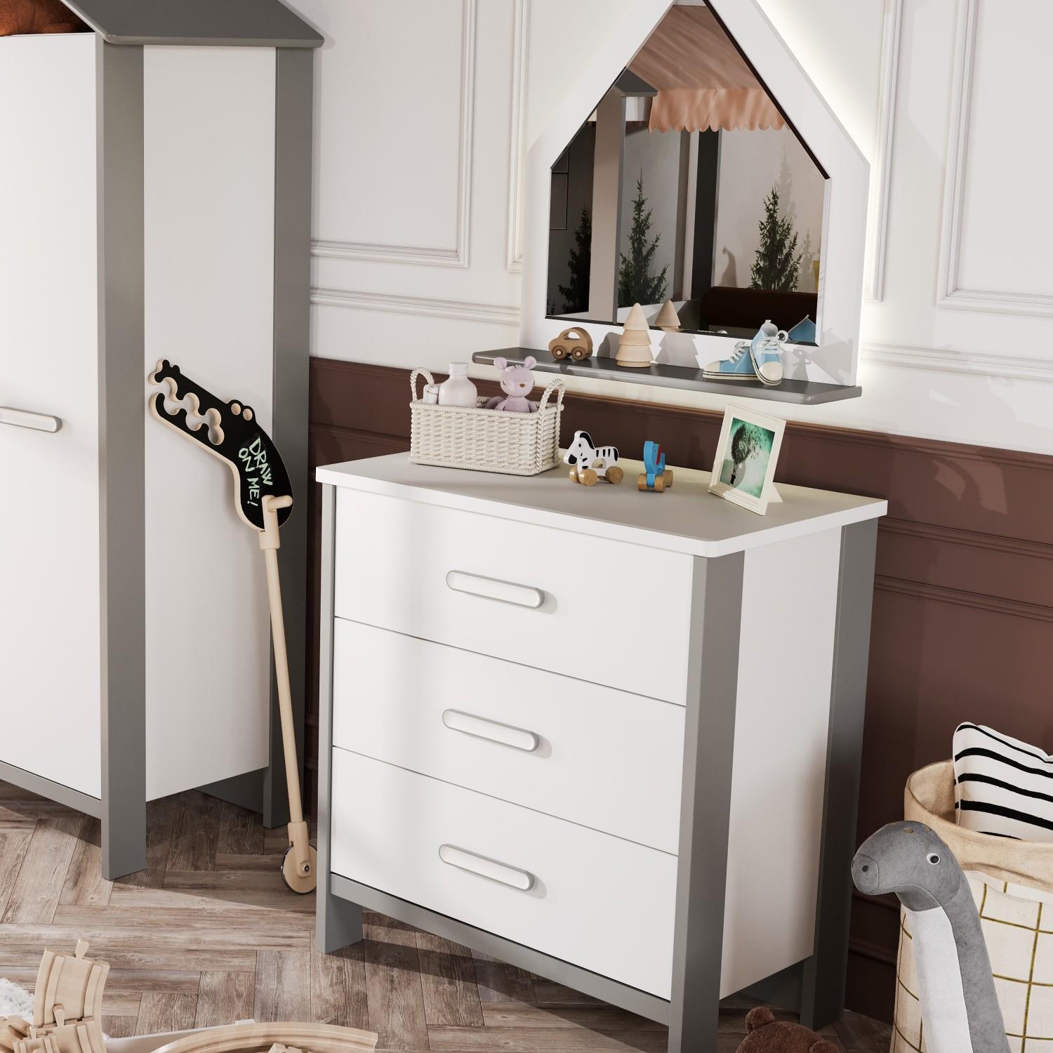 MeltemKids Cozy Gri Çocuk Odası Şifonyer – Şık ve Kullanışlı Tasarım