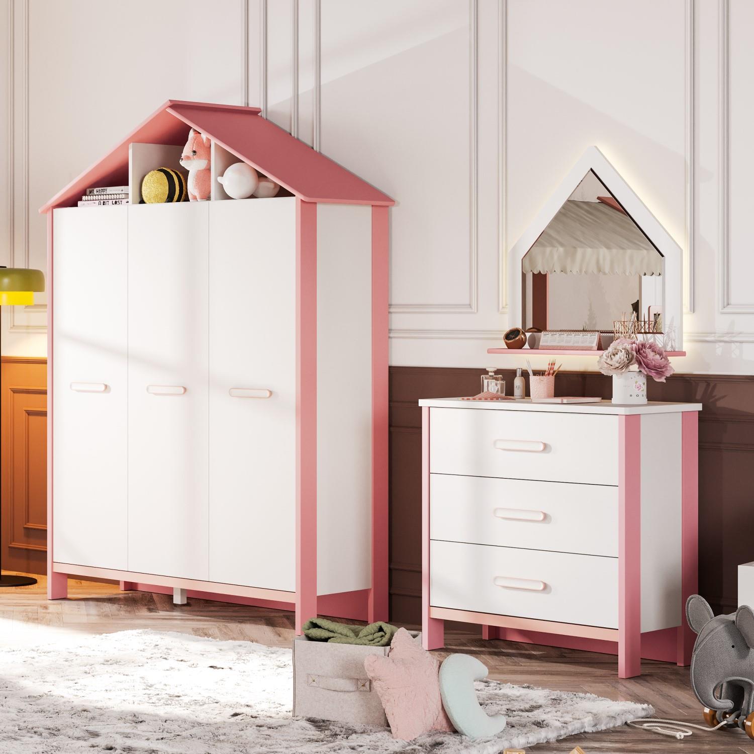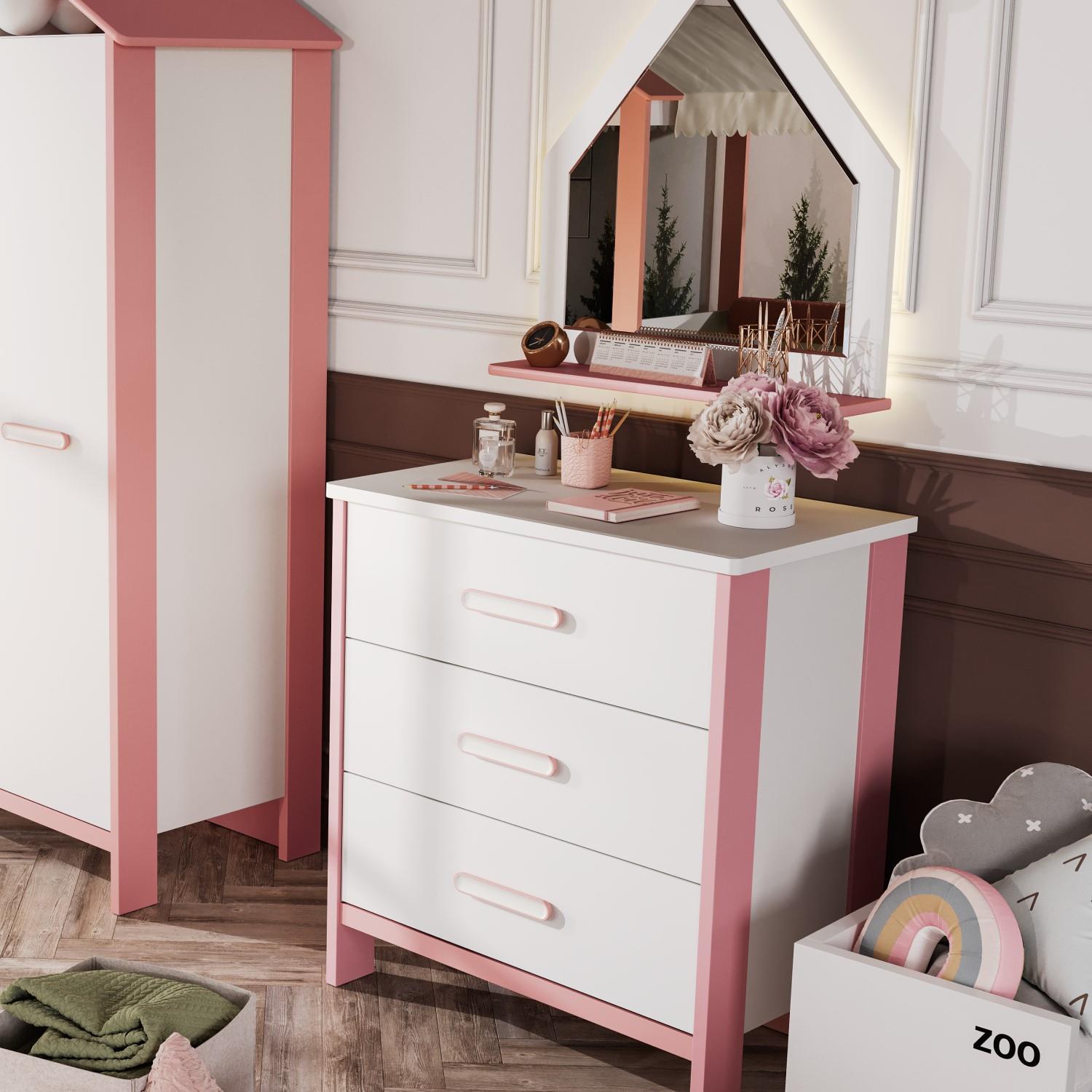 MeltemKids Cozy Pembe Çocuk Odası Şifonyer – Şık ve Kullanışlı Tasarım