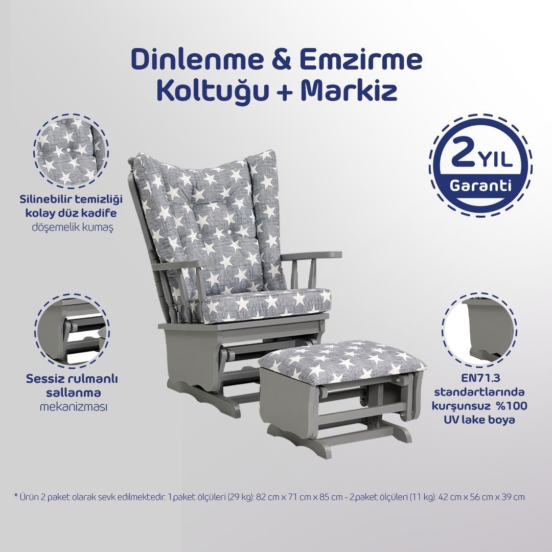 * Ergonomik Tasarım: Emzirme, dinlenme ve TV izleme koltuğu olarak kullanılabilir.