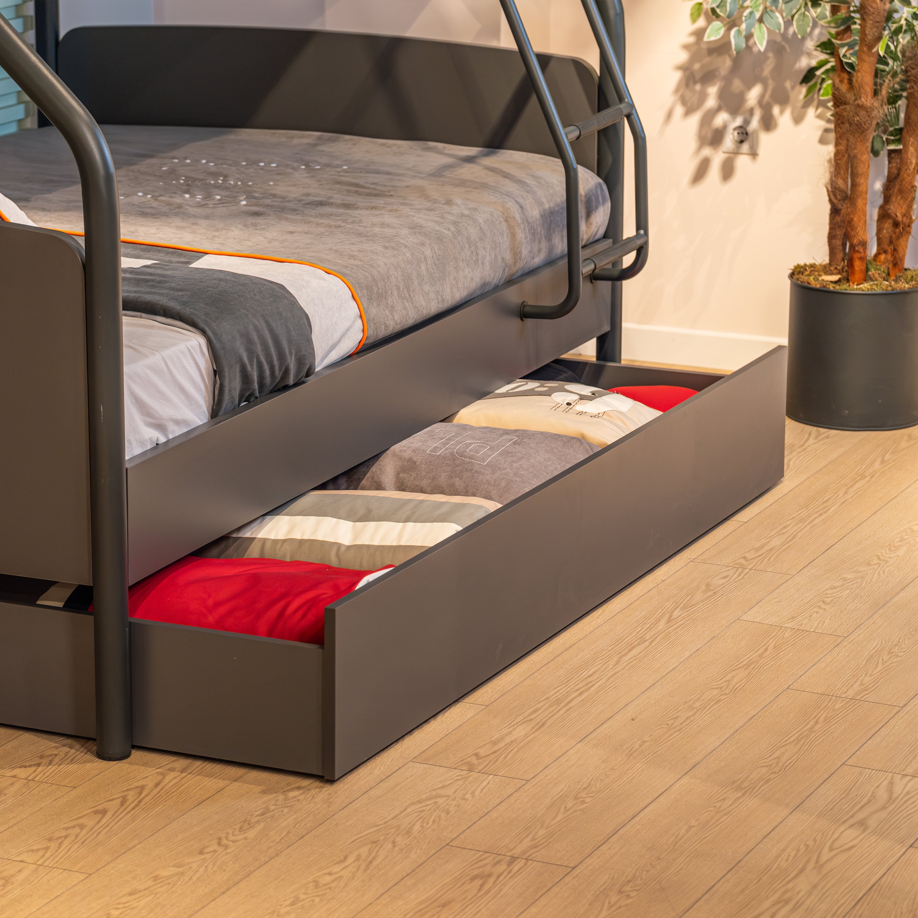 MeltemKids Dual | Teddy Antrasit Karyola Altı Yavru Yatak Sandık Çekmece