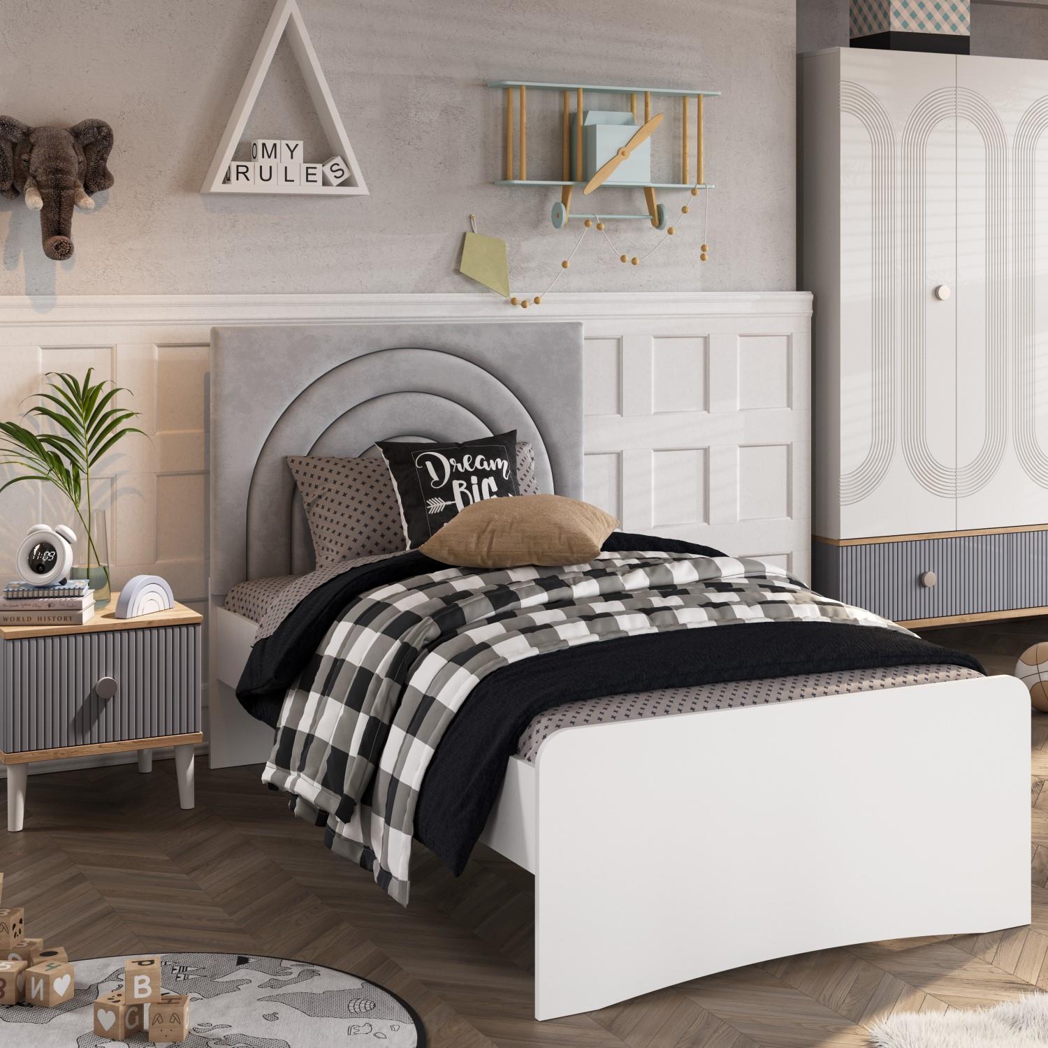 MeltemKids Fiona Gri Genç Odası Amortisörlü Bazalı Tek Kişilik Karyola 100x200 cm