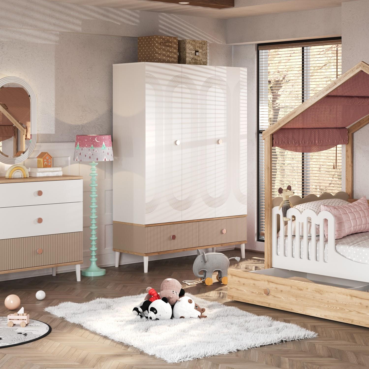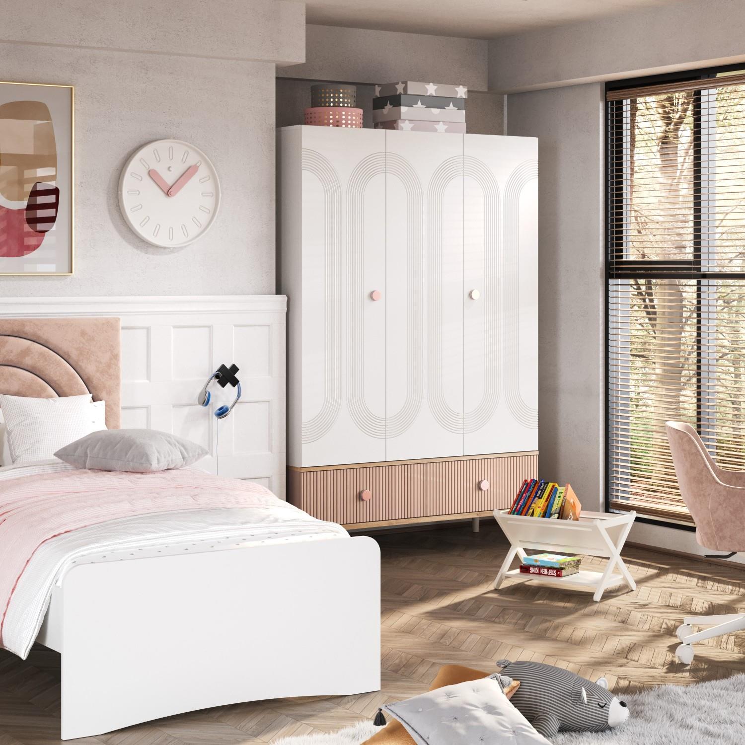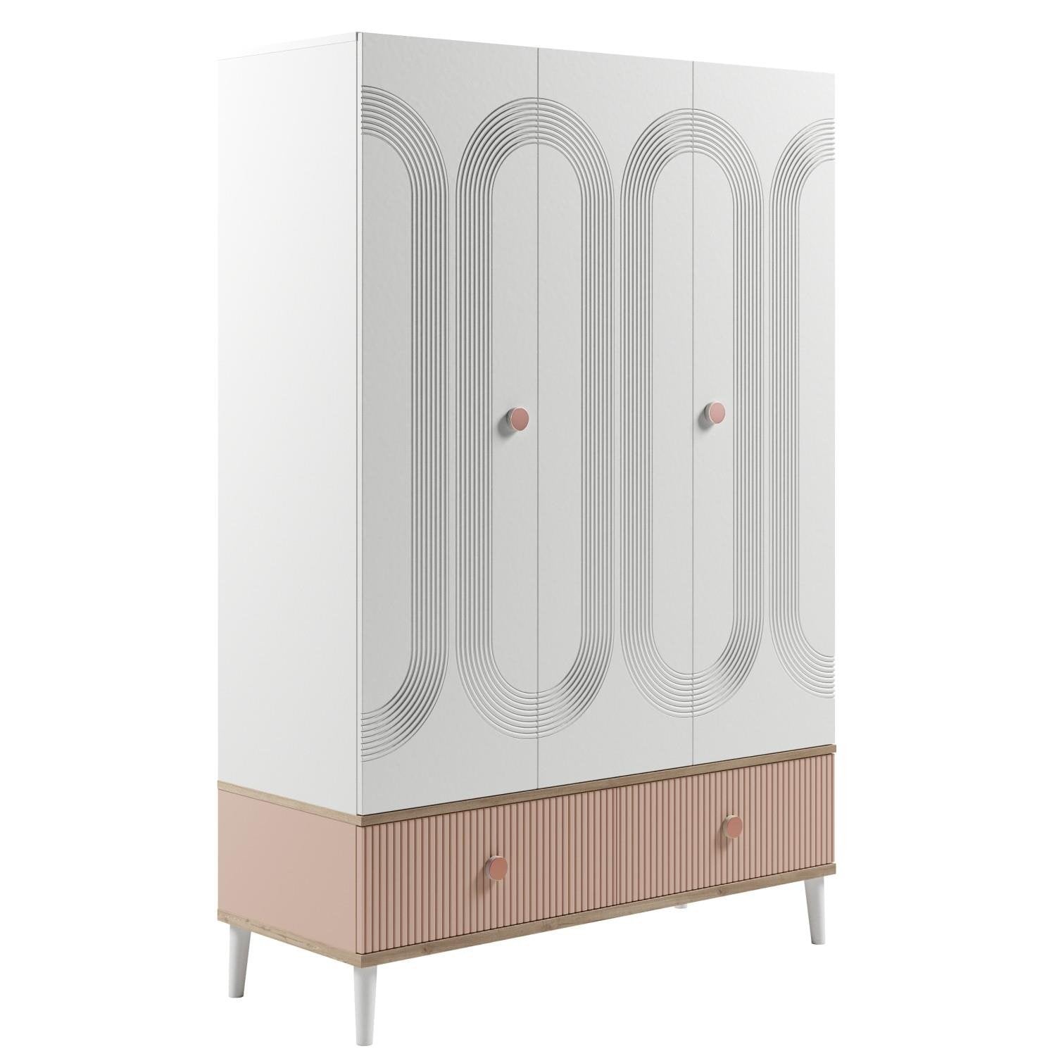 MeltemKids Fiona Pembe Çocuk Genç Odası Üç Kapılı Dolap