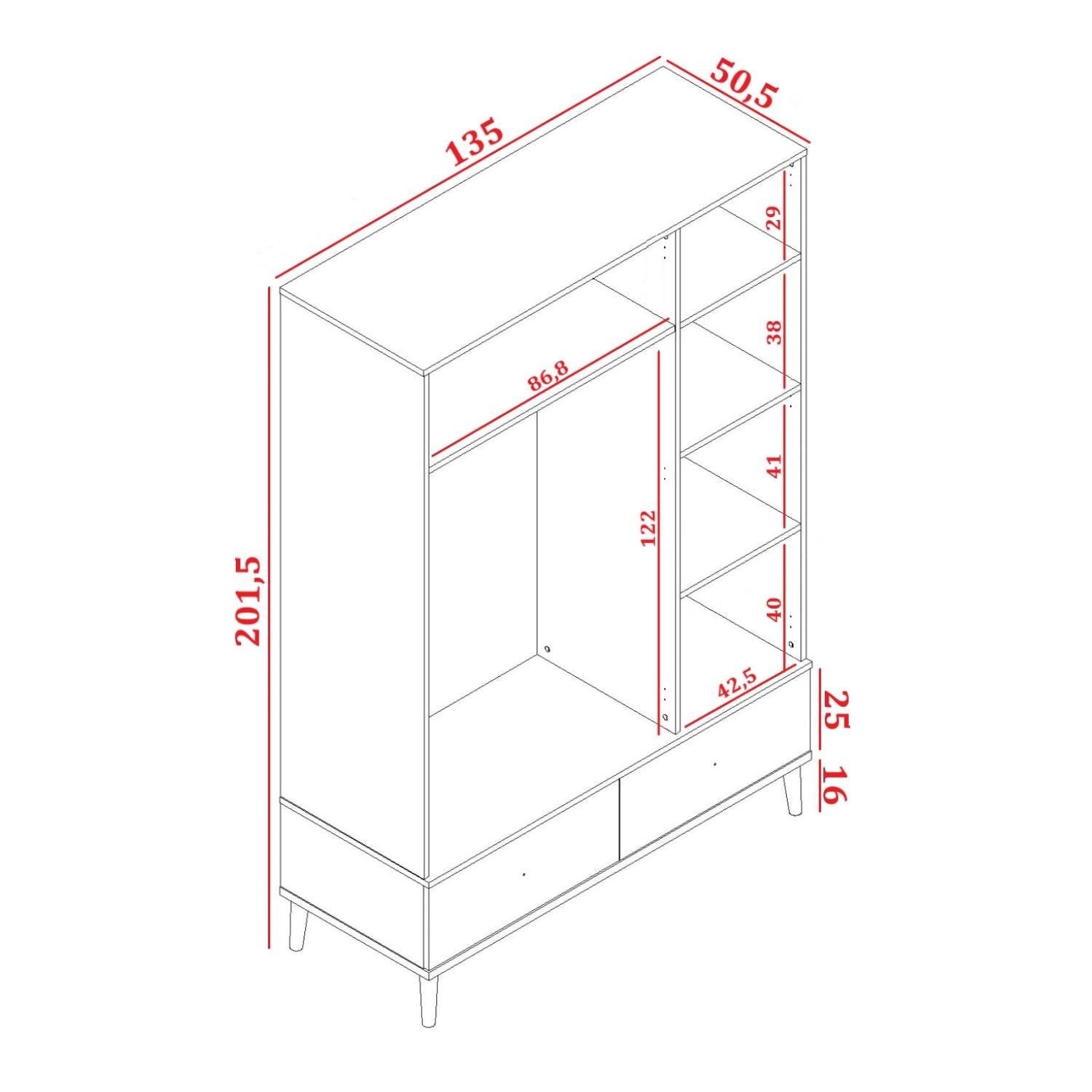 * Ölçüler: Genişlik:135 cm | Derinlik:51 cm | Yükseklik:202 cm