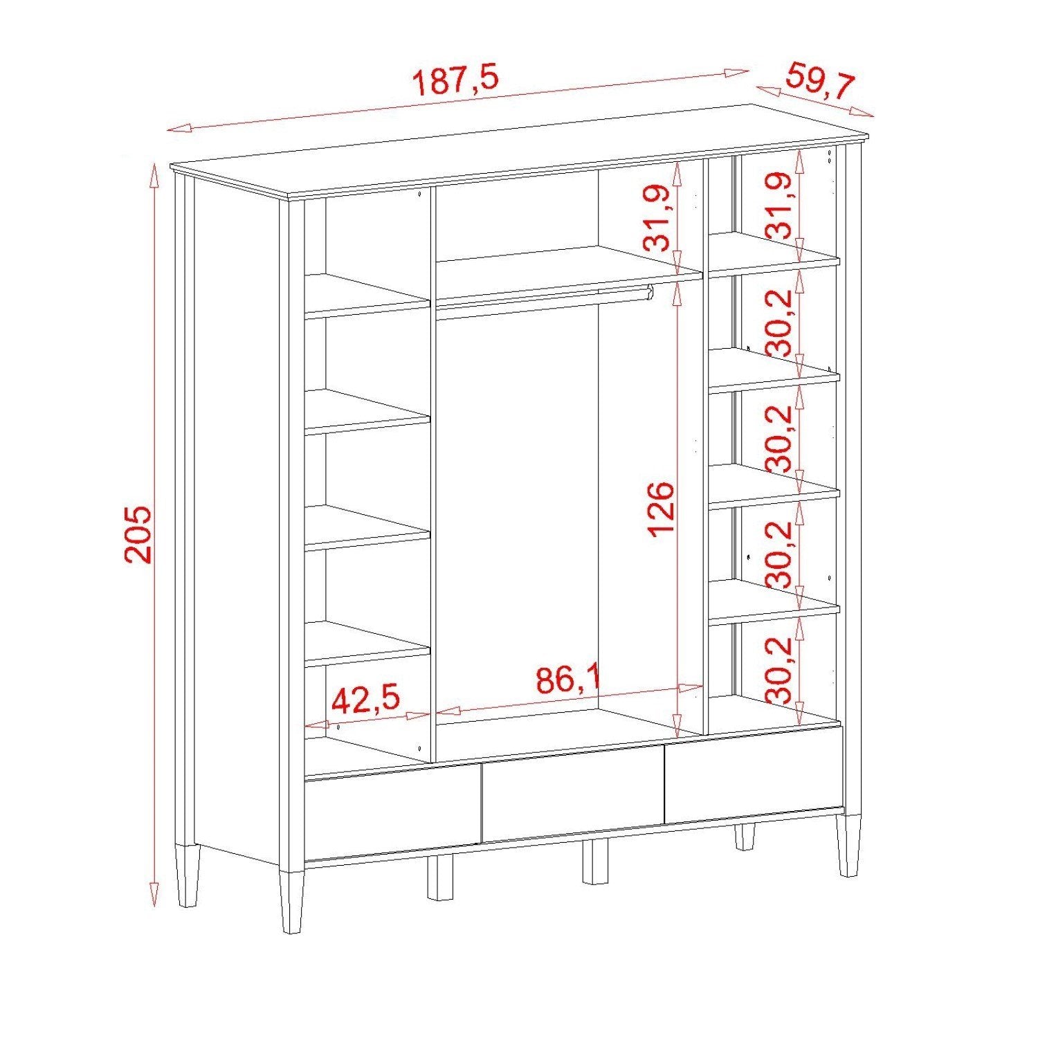 * Ölçüler: Genişlik:188 cm | Derinlik:60 cm | Yükseklik:205 cm
