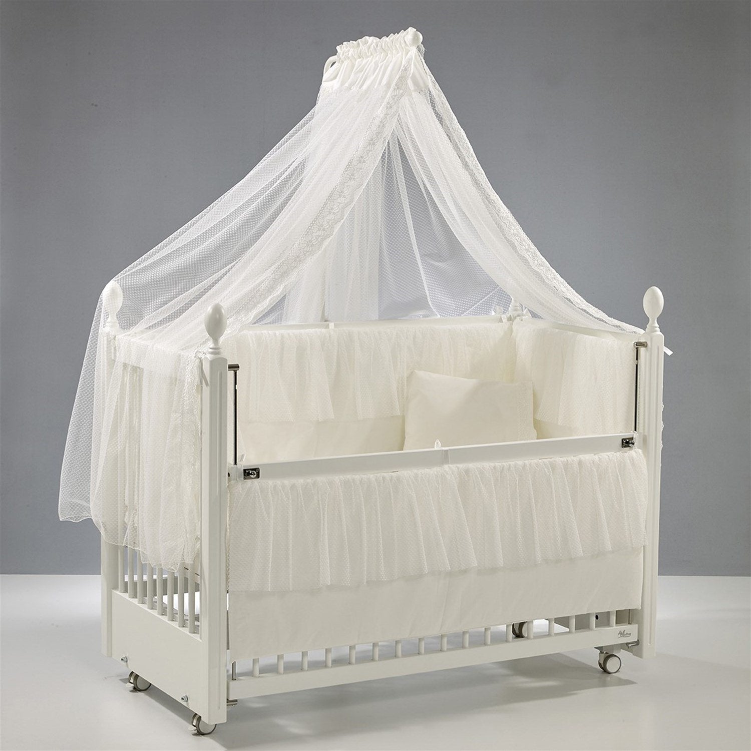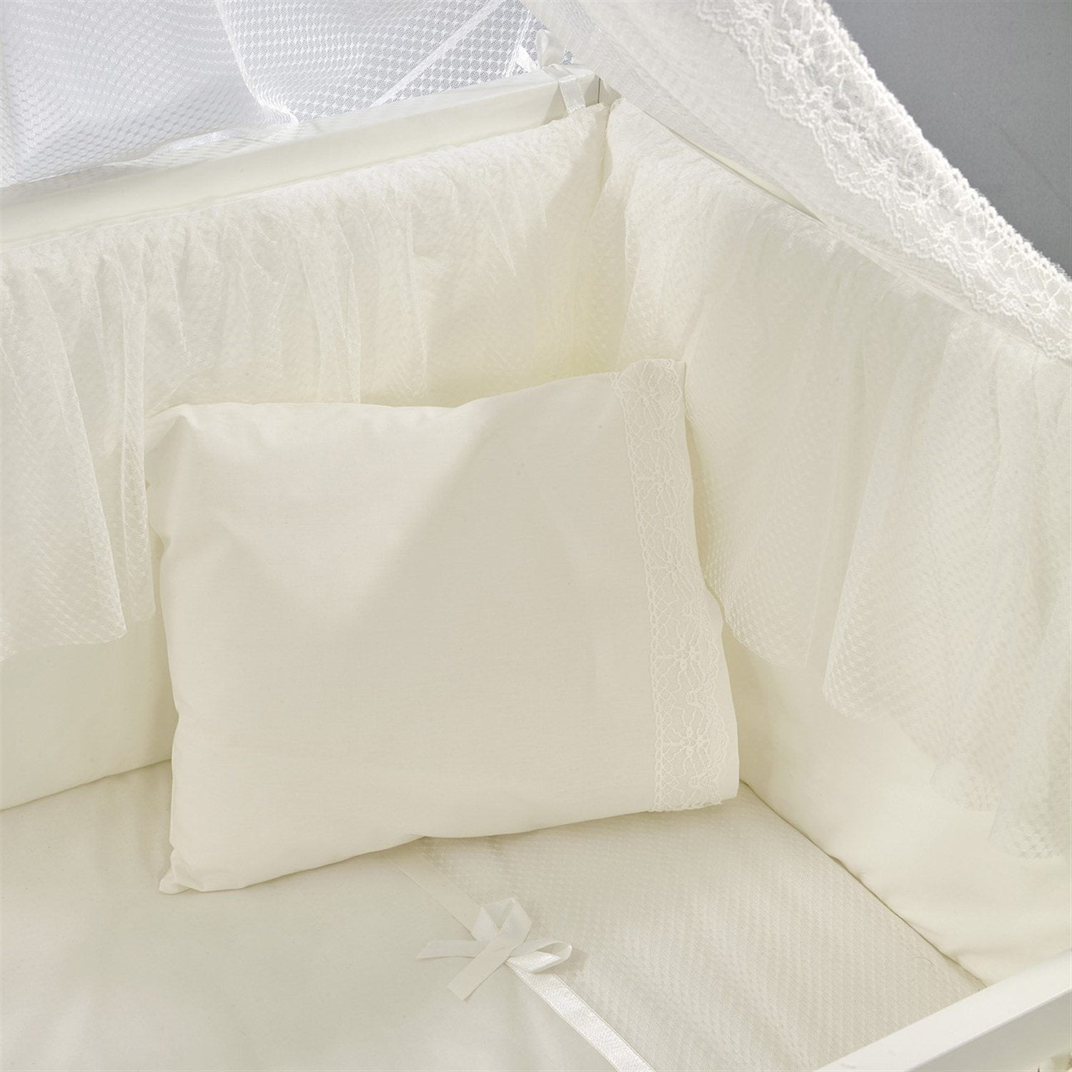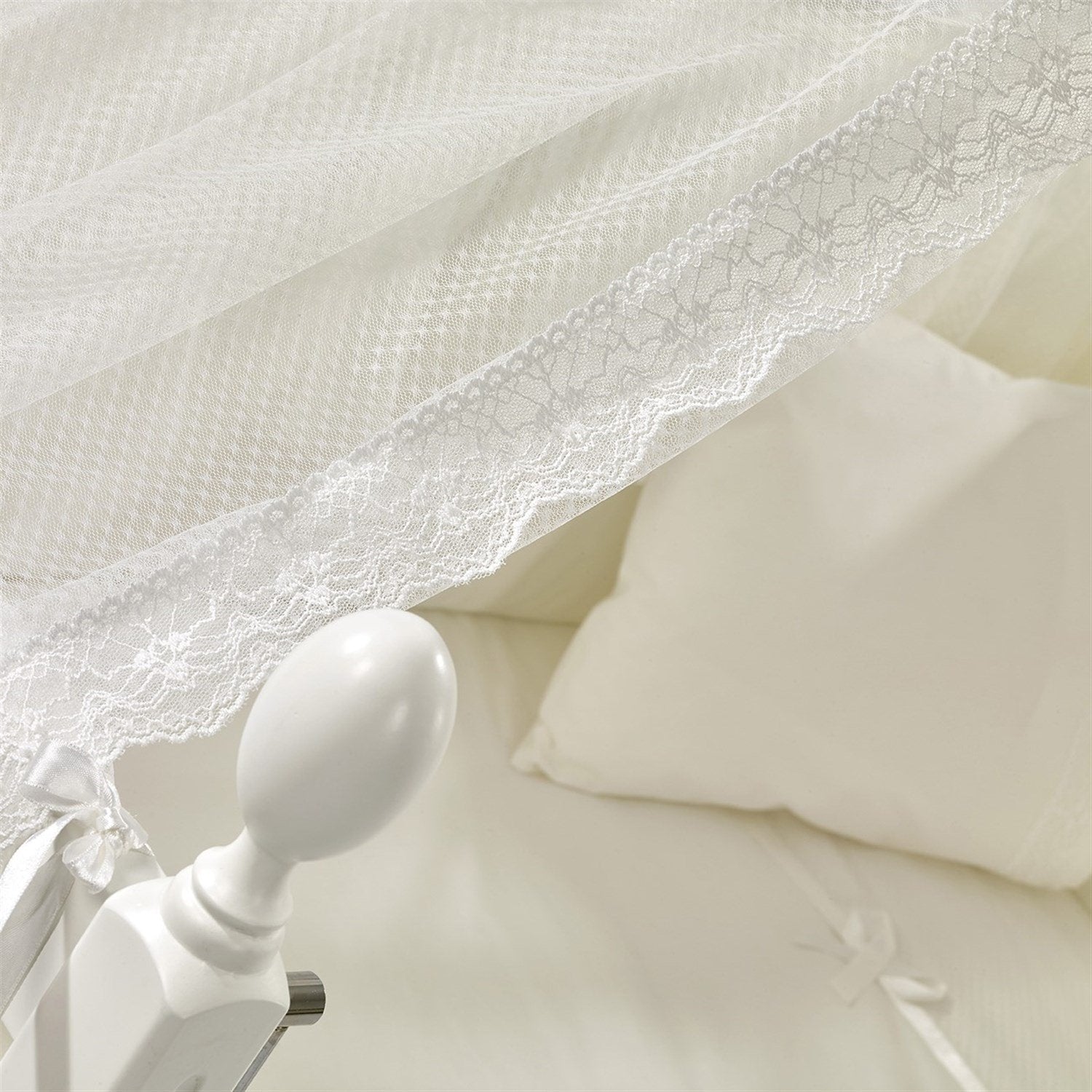 Beyaz MDF Beşik + Yatak + Ekru Uyku Seti + Cibinlik Seti