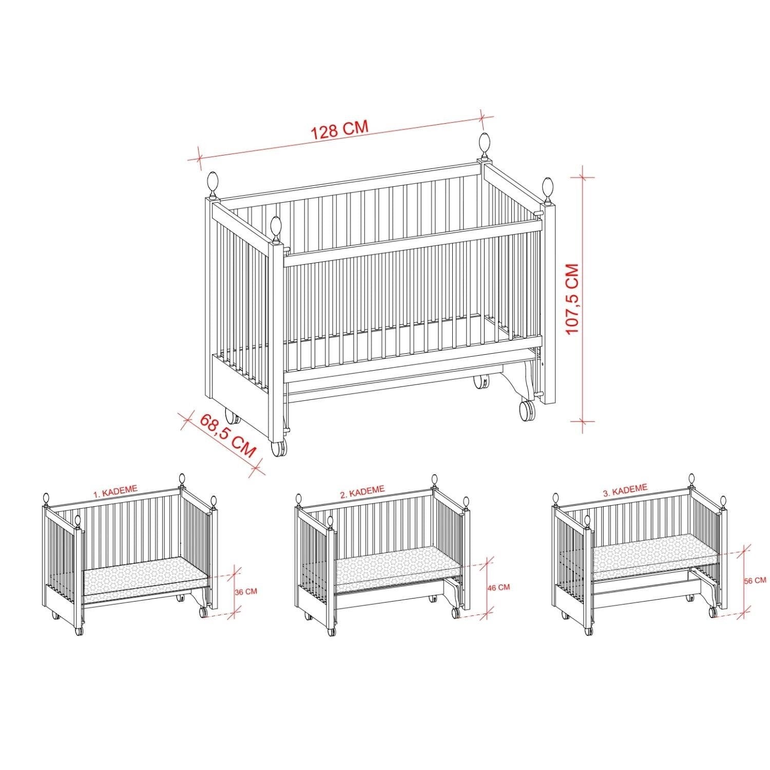 📏 Ayarlanabilir Yatak Yüksekliği: 3 kademeli yükseklik ayarı ile bebeğinizin büyümesine uyum sağlar.