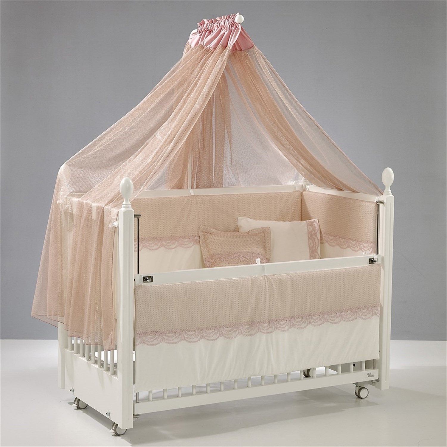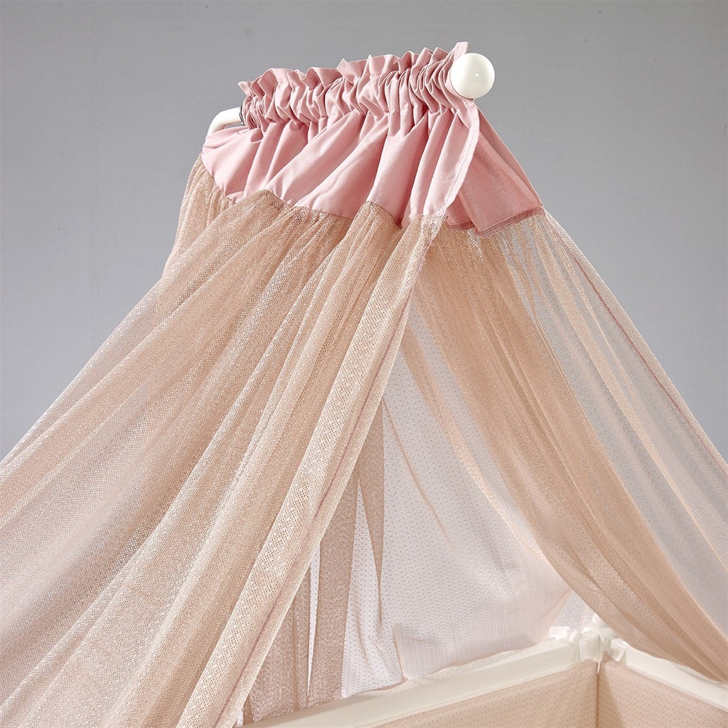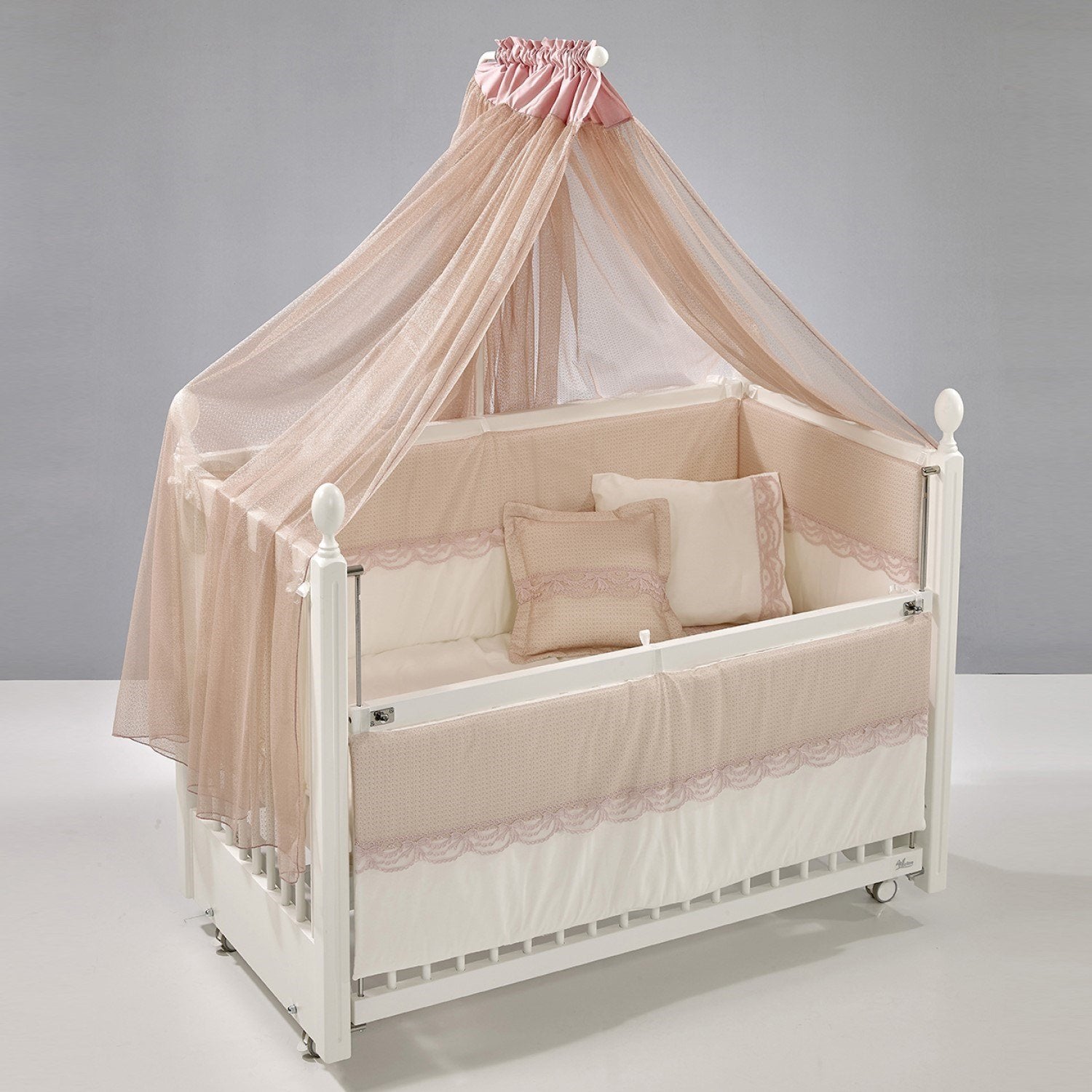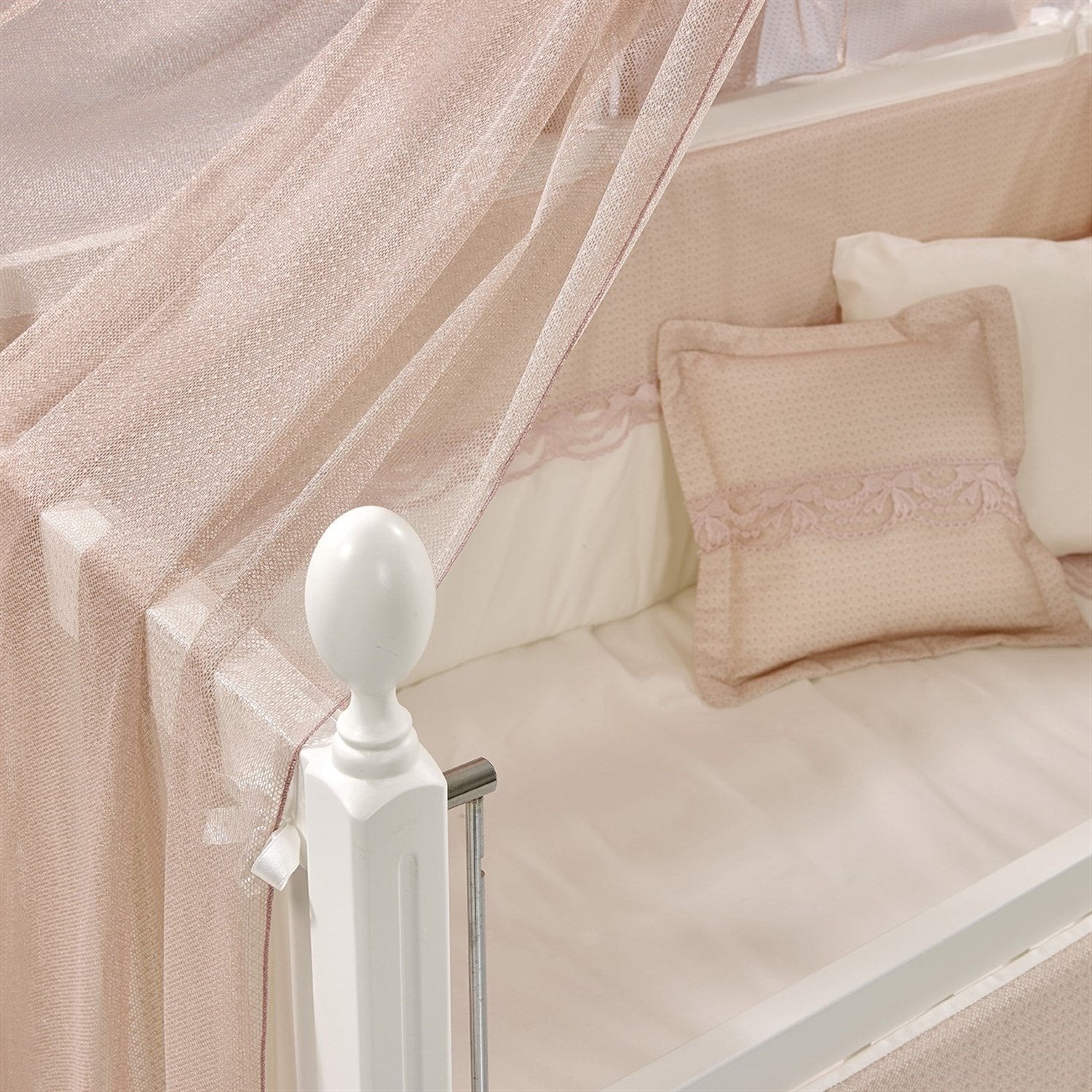 Beyaz MDF Beşik + Yatak + Pembe Uyku Seti + Cibinlik Seti
