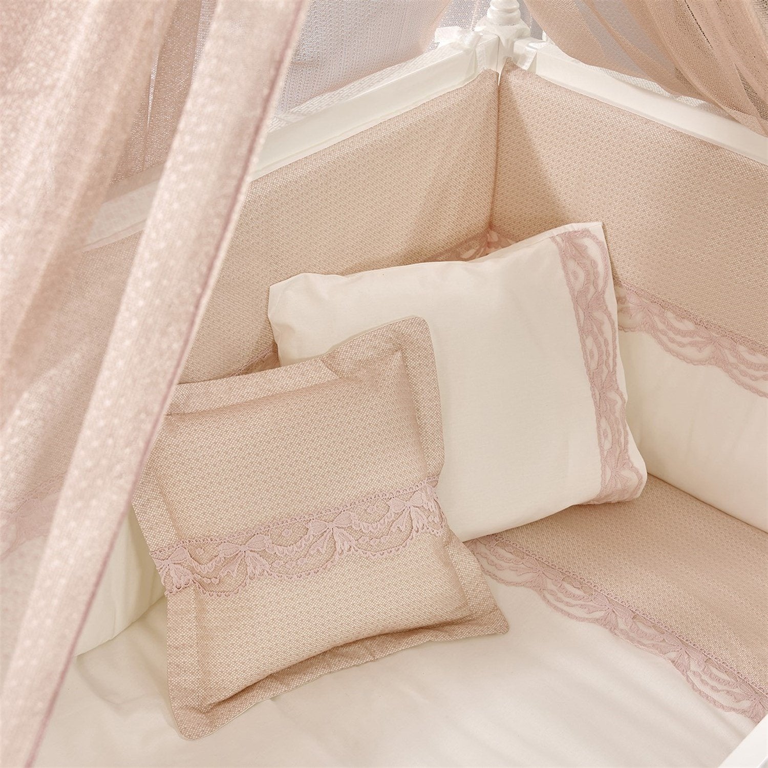 💤 OEKO-TEX Sertifikalı 11 Parçalı Uyku Seti: Yumuşacık pamuklu kumaştan üretilmiştir. 1 adet yorgan, 1 adet çarşaf, 1 adet yastık, 1 adet yastık kılıfı, 1 adet süs yastığı, 2 adet kısa kenar koruma, 2 adet uzun kenar koruma, 1 adet cibinlik tülü, 1 adet cibinlik aparatı