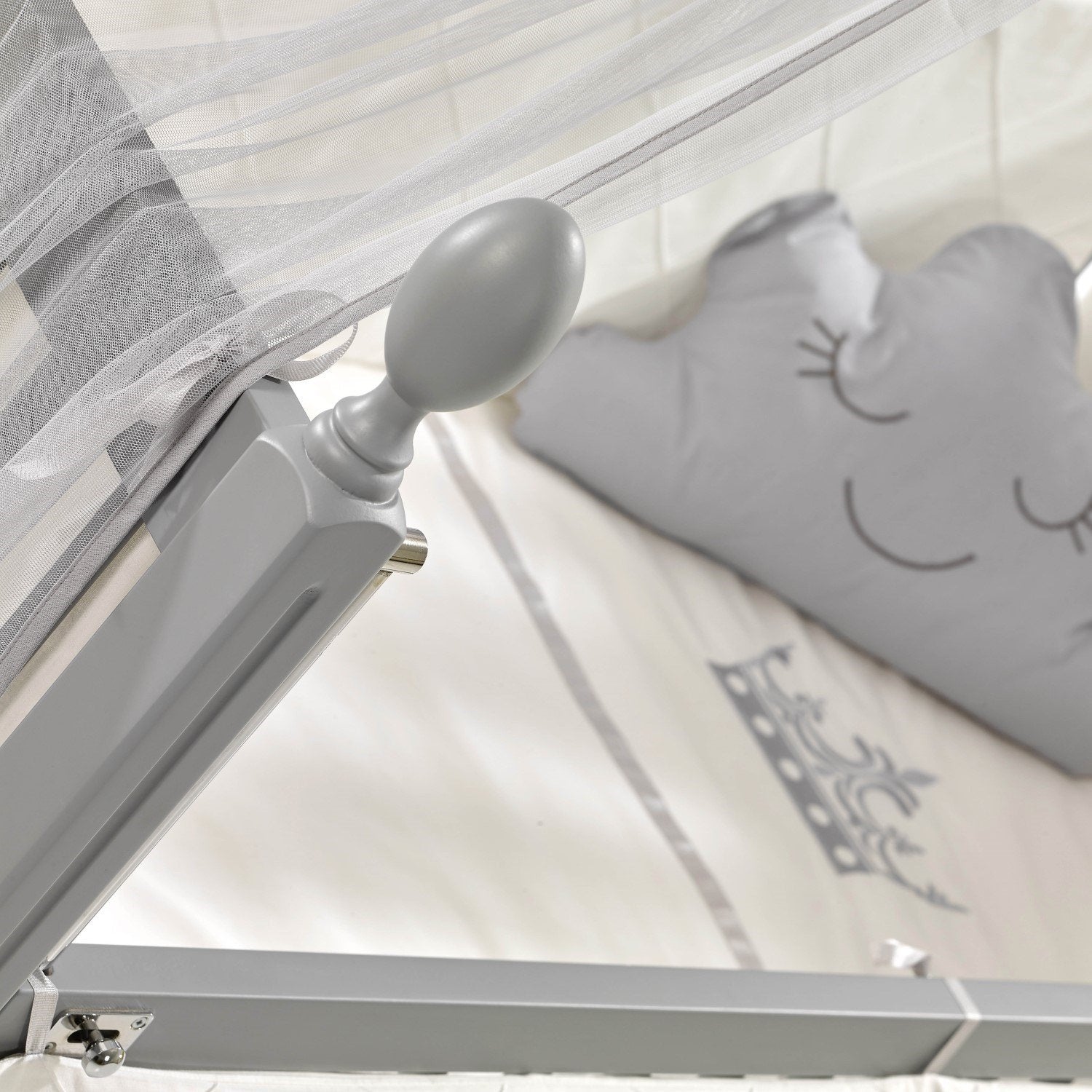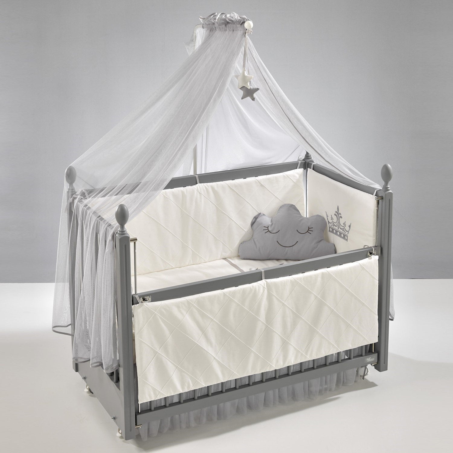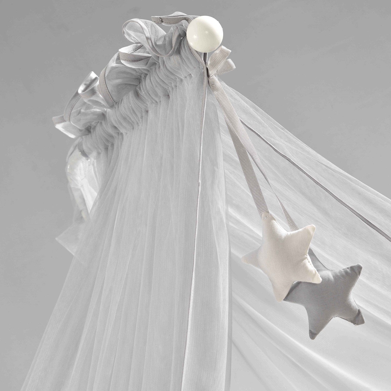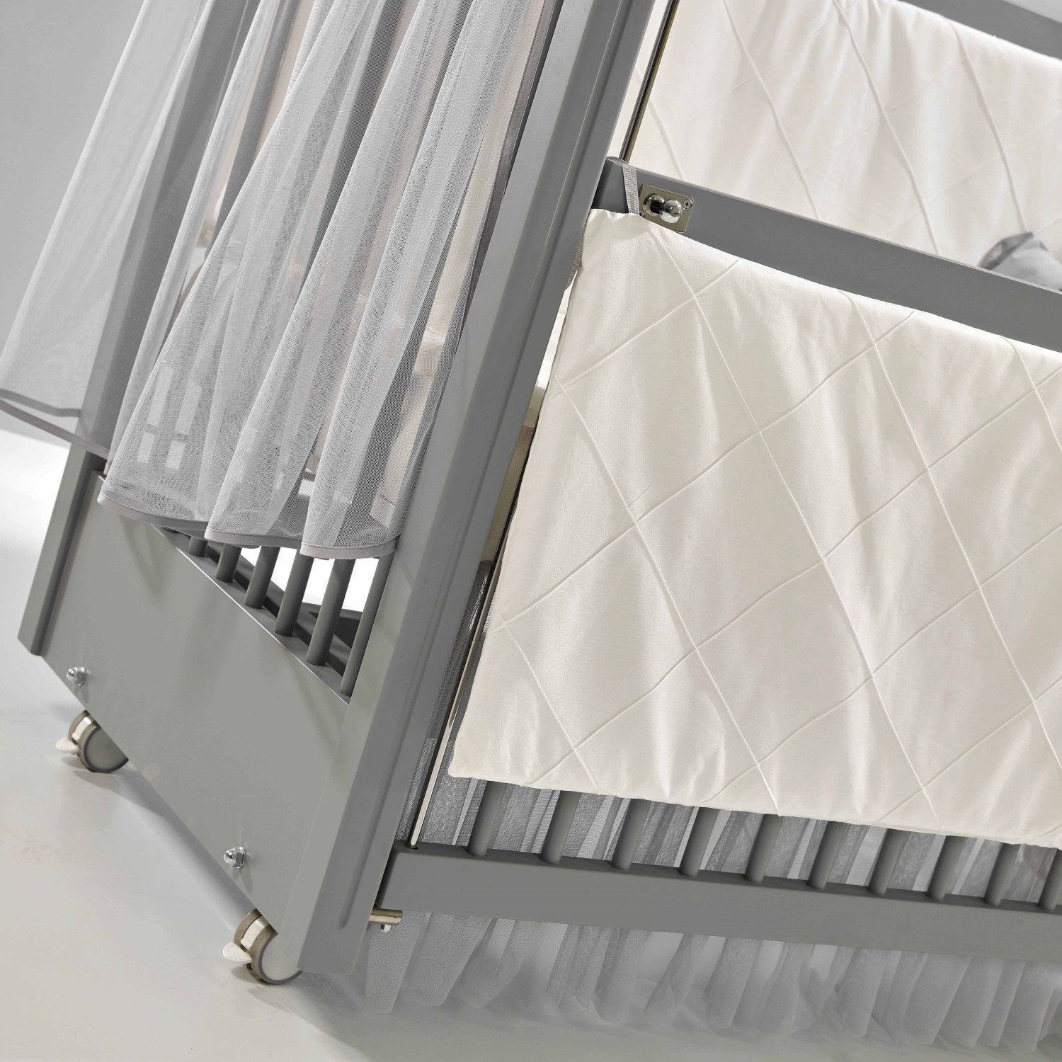 Gri MDF Beşik + Yatak + Motto Gri Nakışlı Uyku Seti + Cibinlik Seti