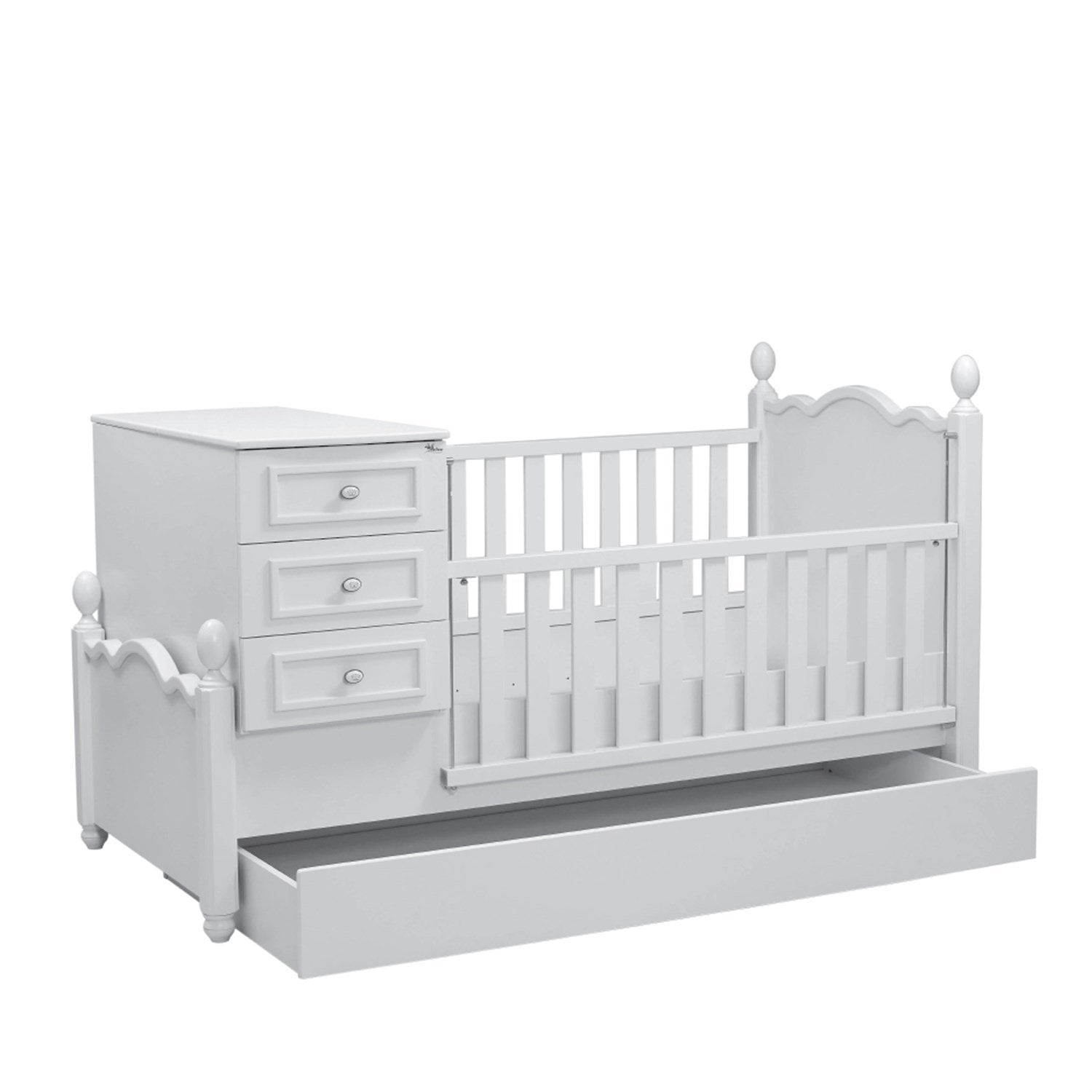 MeltemKids Kral Beyaz Bebek Odası Büyüyen Beşik & Karyola