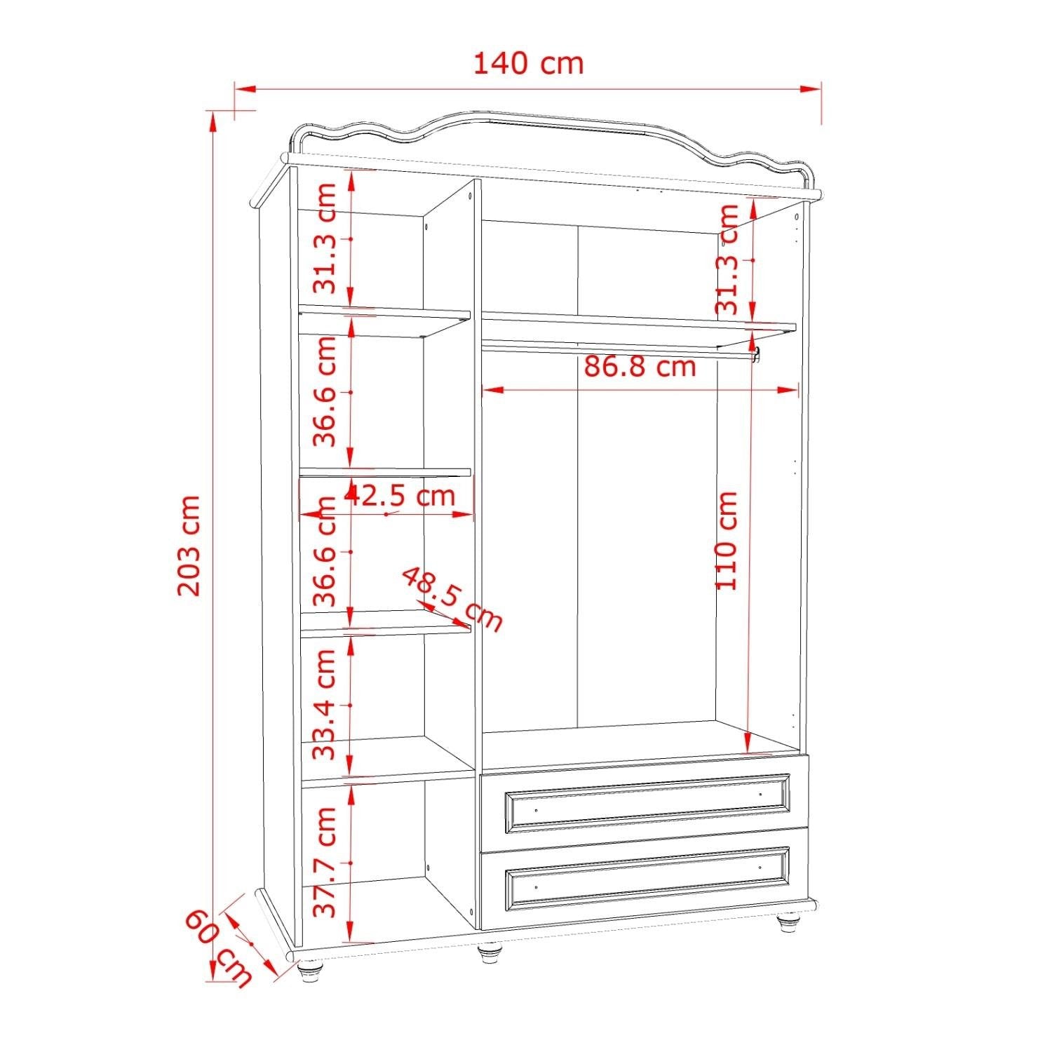 * Ölçüler: Genişlik:140 cm | Derinlik:60 cm | Yükseklik:203 cm