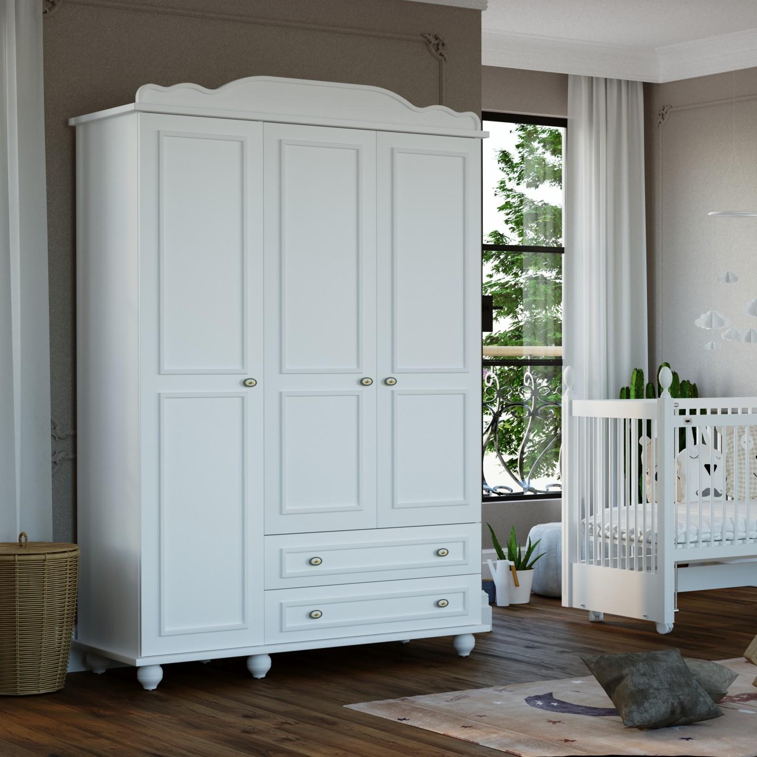 MeltemKids Kral Beyaz Bebek Odası Üç Kapılı Dolap