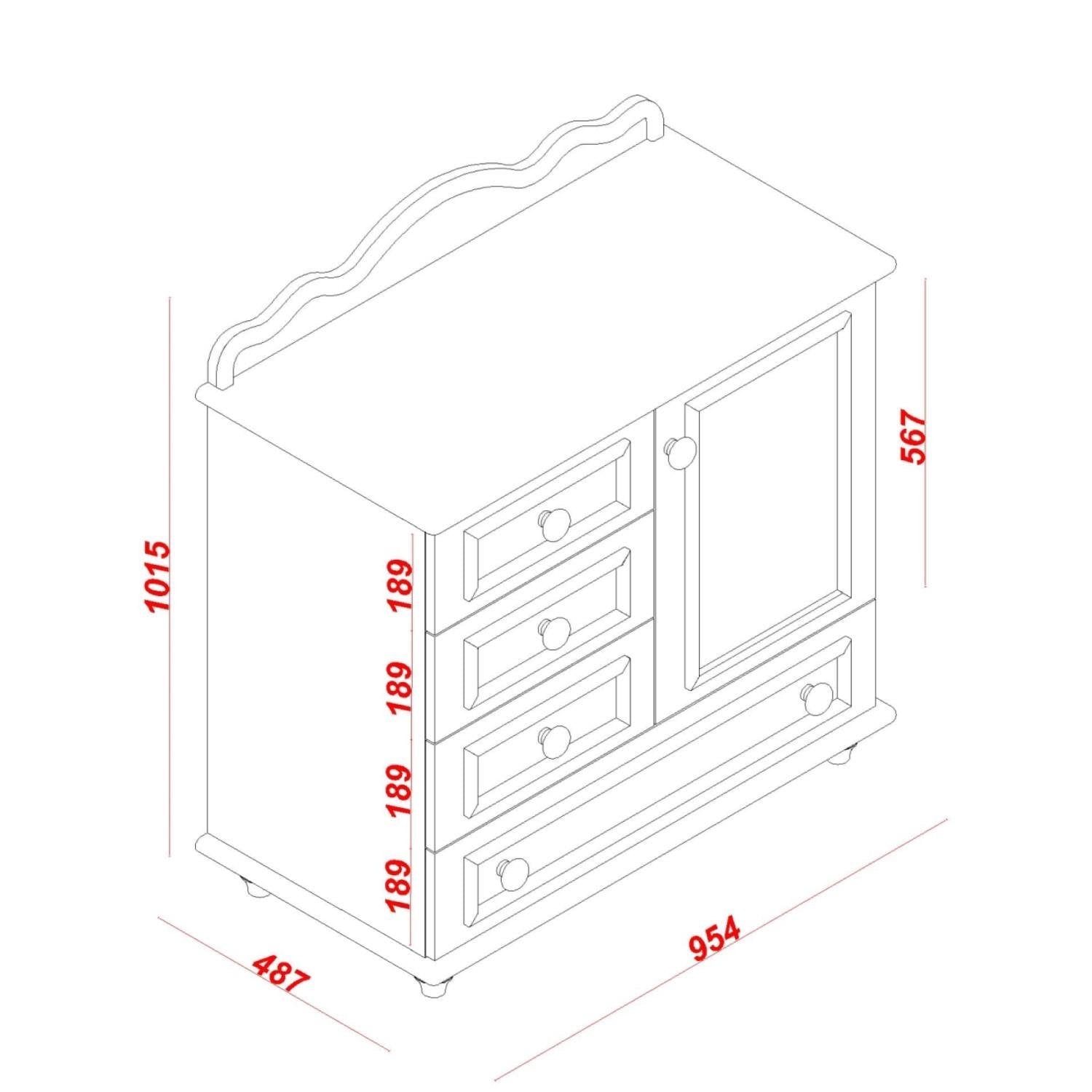 - Estetik Tasarım: Şifonyer ayakları ve topuzları kayın masif malzemeden üretilmiş, el işçiliğiyle yapılmış taç, kapak ve çekmece klapaları ve kristal kulplar ile zarif bir görünüm kazanmıştır.