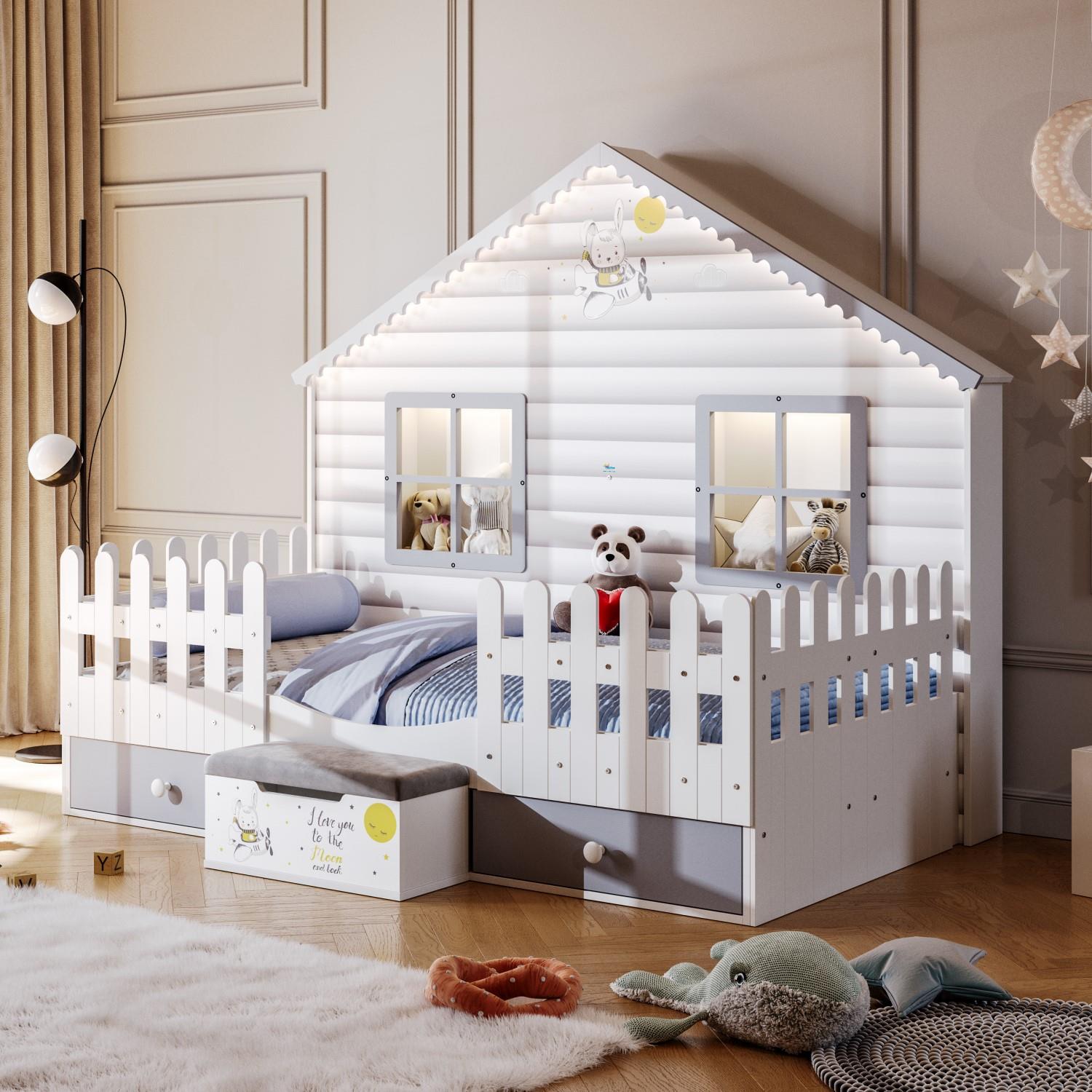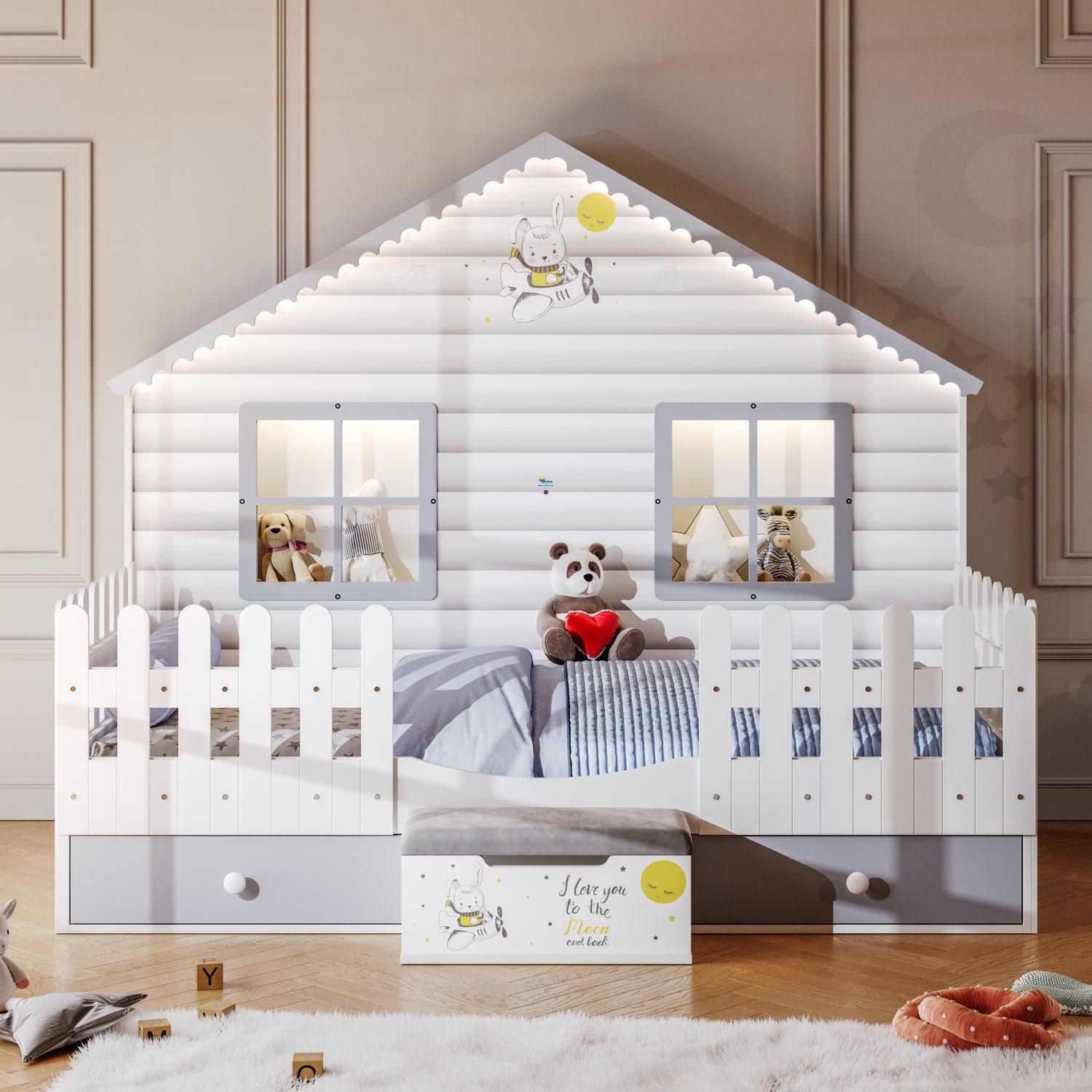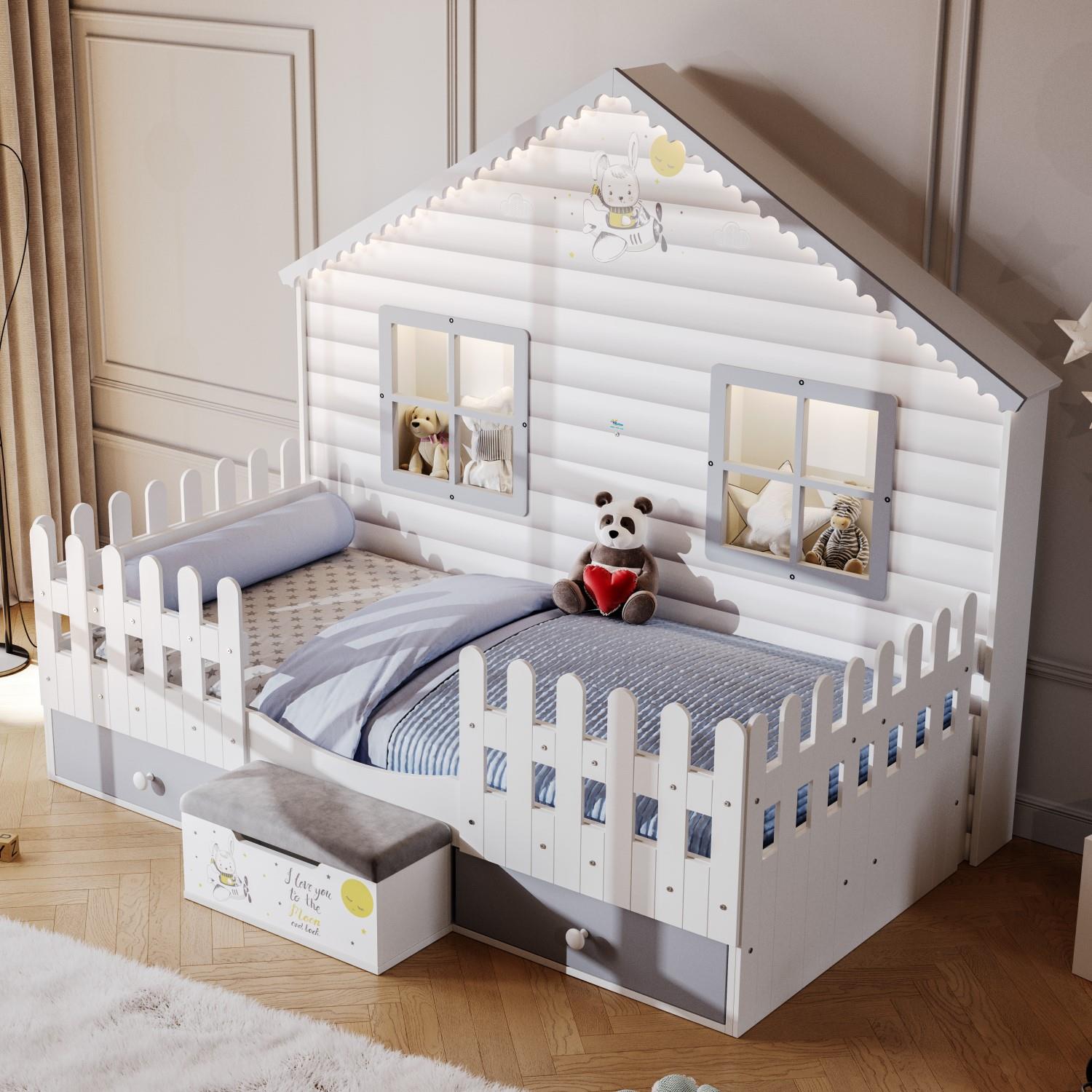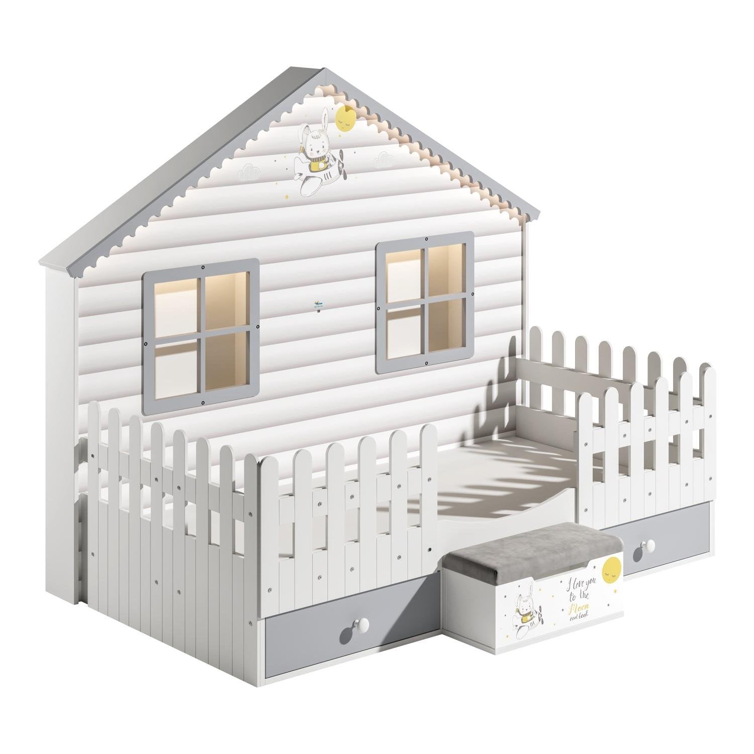 MeltemKids Küçük Ev Gri Çocuk Odası Tek Kişilik Montessori Karyola 100x200 cm