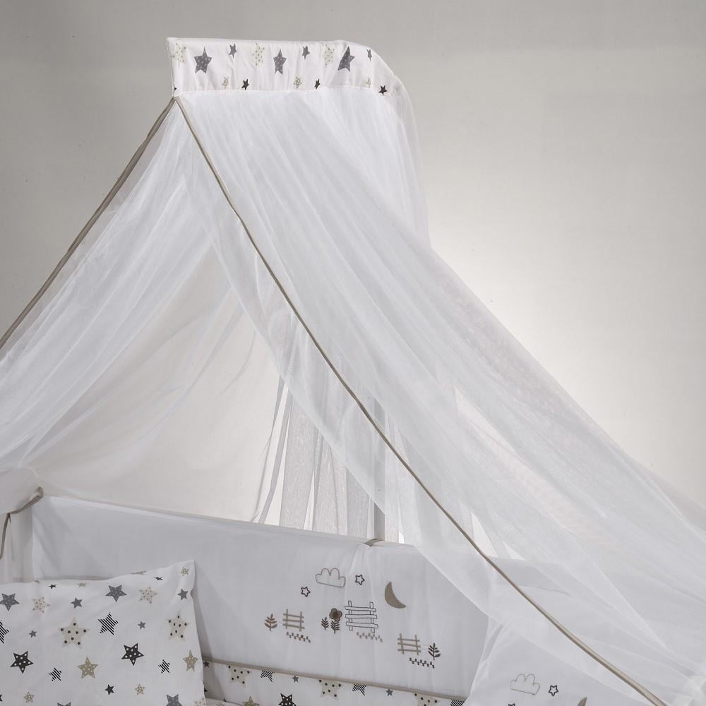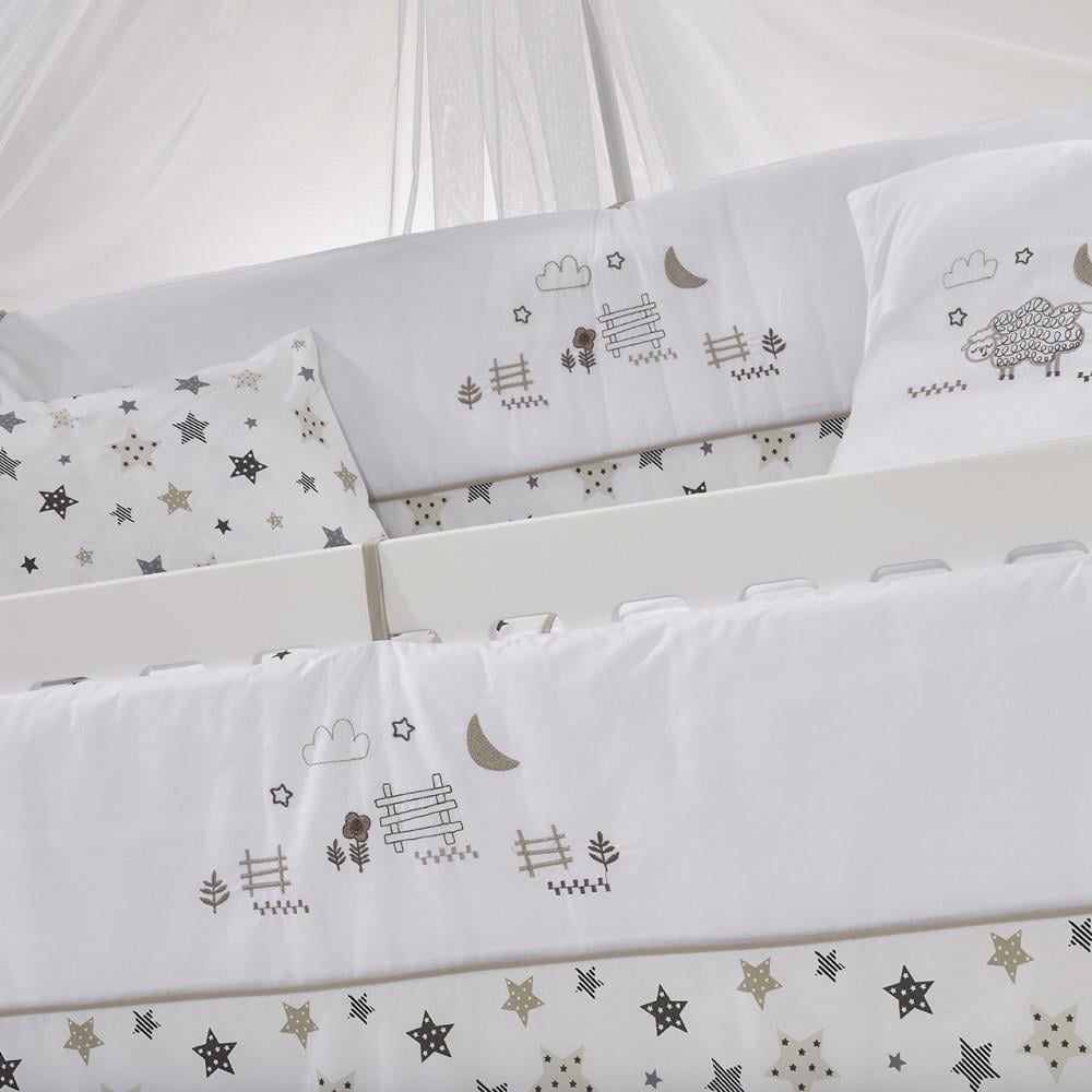 * Set içeriği 9 parçadan oluşmaktadır: 1 adet yorgan, 1 adet çarşaf, 1 adet yastık, 1 adet nakışlı kırlent kılıfı, 1 adet fermuarlı kısa kenar koruma, 2 adet fermuarlı uzun kenar koruma, 1 adet cibinlik, 1 adet cibinlik aparatı