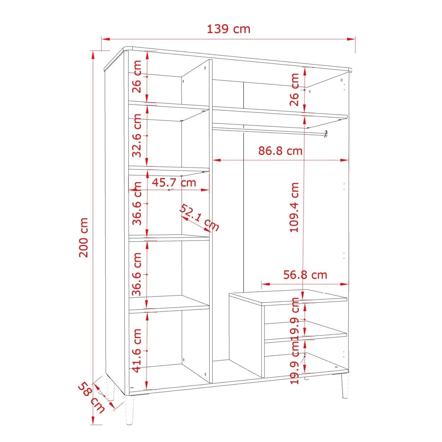 * Ölçüler: Genişlik:139 cm | Derinlik:58 cm | Yükseklik:200 cm
