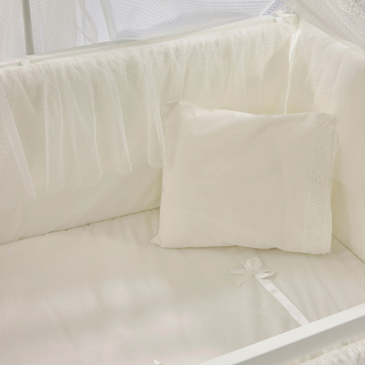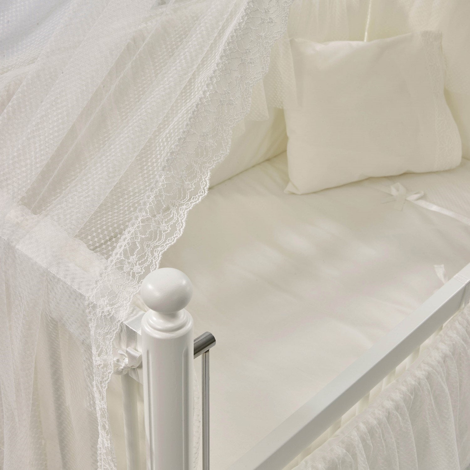 Beyaz MDF Beşik + Yatak + Ekru Uyku Seti + Cibinlik Seti