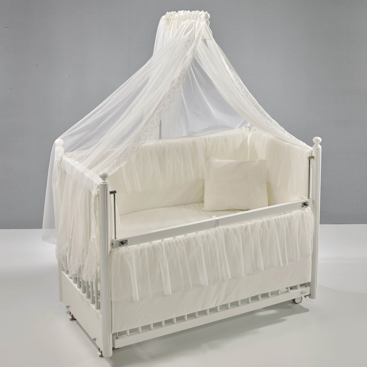 Mondo Anne Yanı Ahşap Sallanır Beşik 60x120 cm (beyaz-ekru)