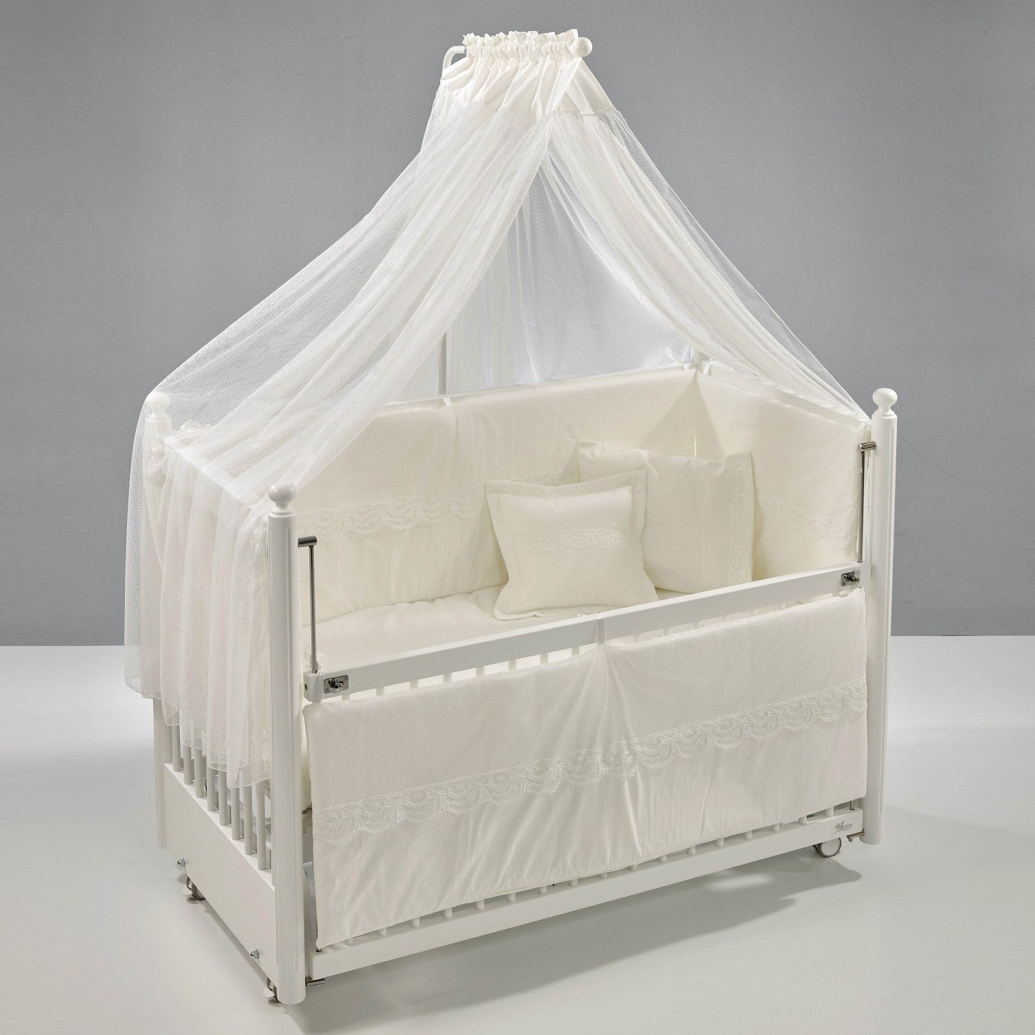 Mondo Anne Yanı Ahşap Sallanır Beşik 60x120 cm (beyaz-krem)