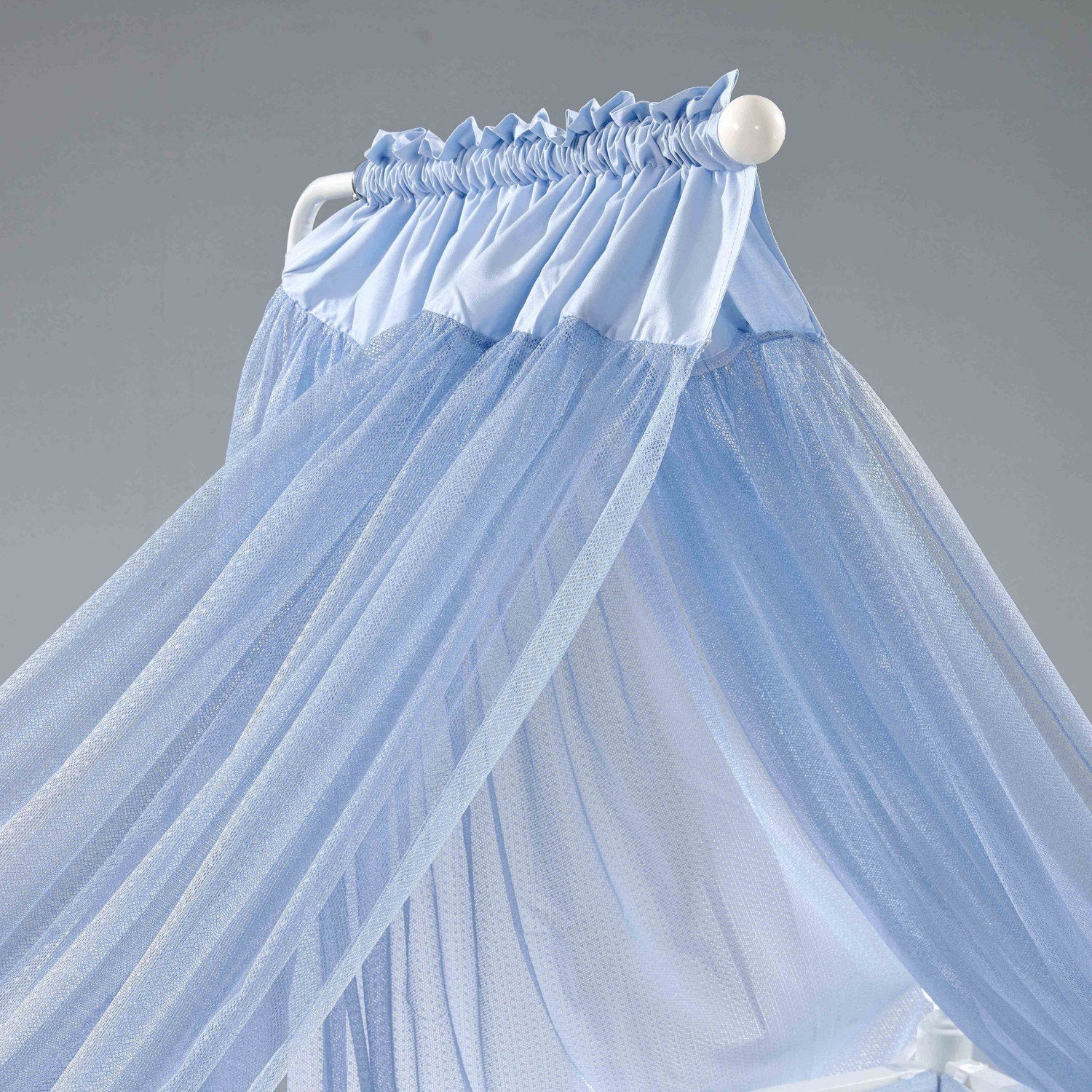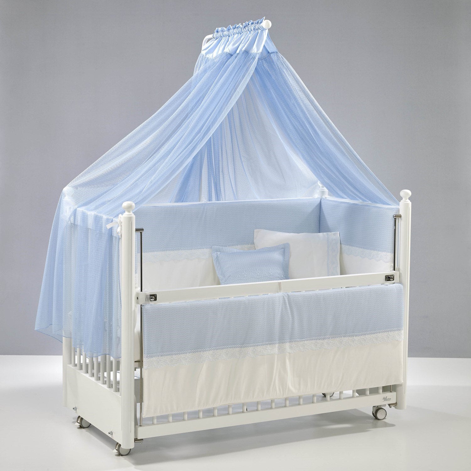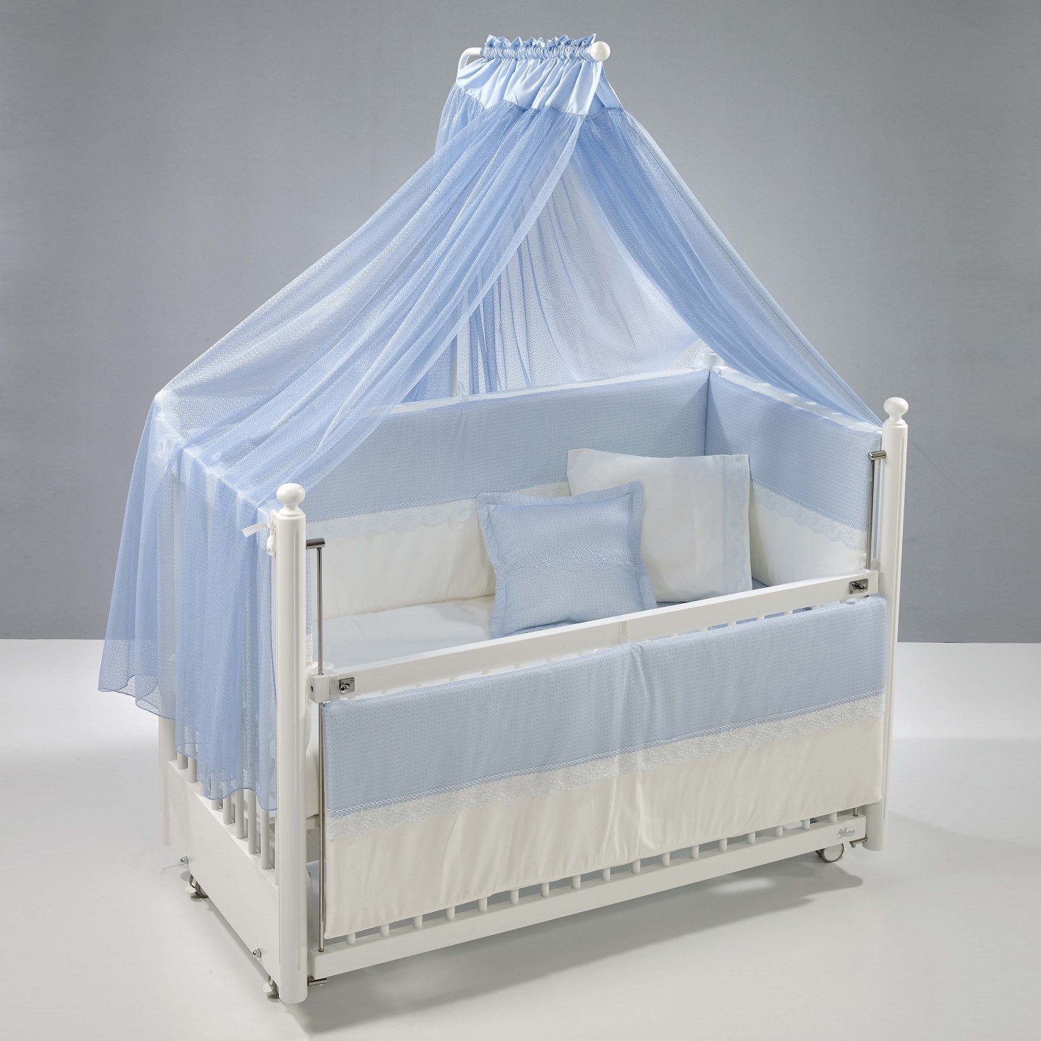 Beyaz MDF Beşik + Yatak + Mavi Uyku Seti + Cibinlik Seti