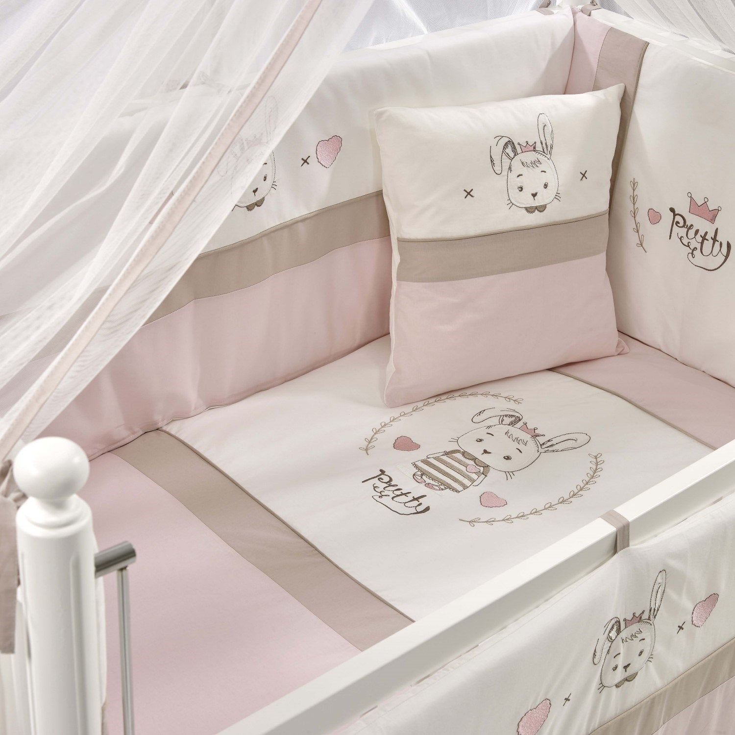Beyaz MDF Beşik + Yatak + Pretty Nakışlı Uyku Seti + Cibinlik Seti