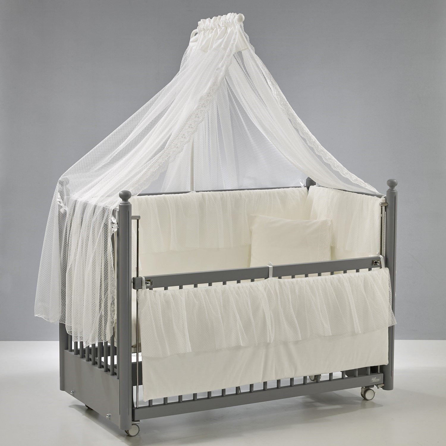 Gri MDF Beşik + Yatak + Ekru Uyku Seti + Cibinlik Seti