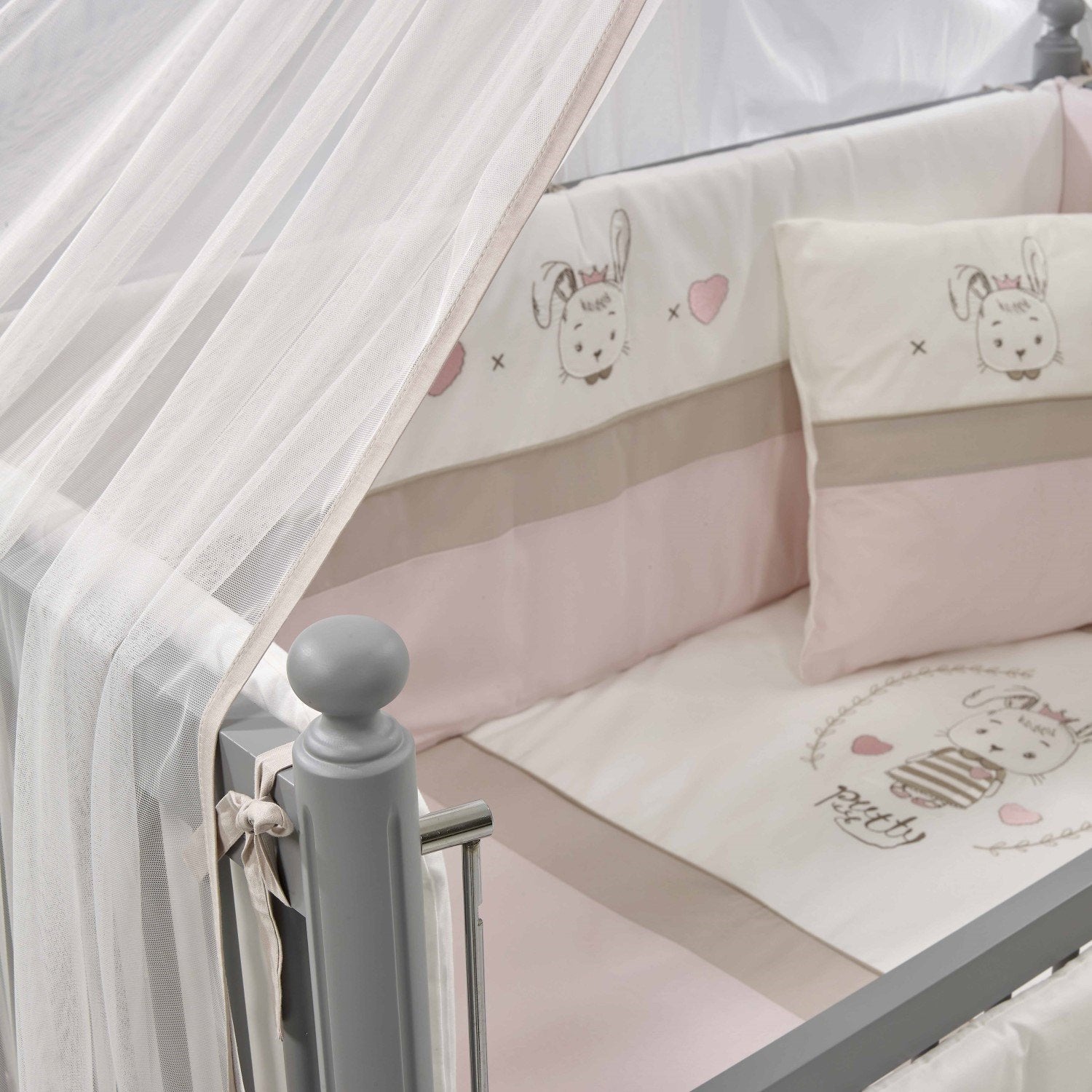 Gri MDF Beşik + Yatak + Pretty Nakışlı Uyku Seti + Cibinlik Seti