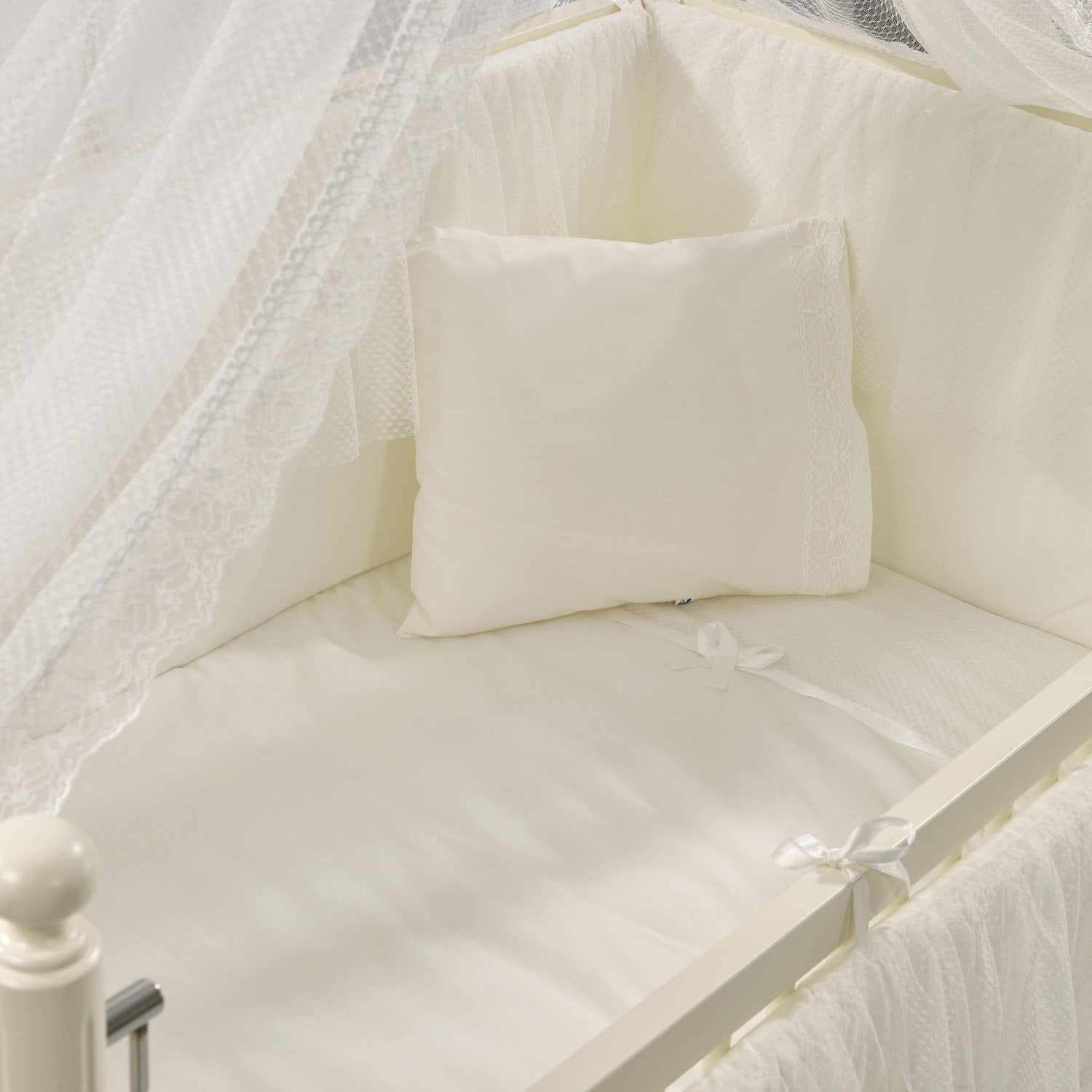 Krem MDF Beşik + Yatak + Ekru Uyku Seti + Cibinlik Seti