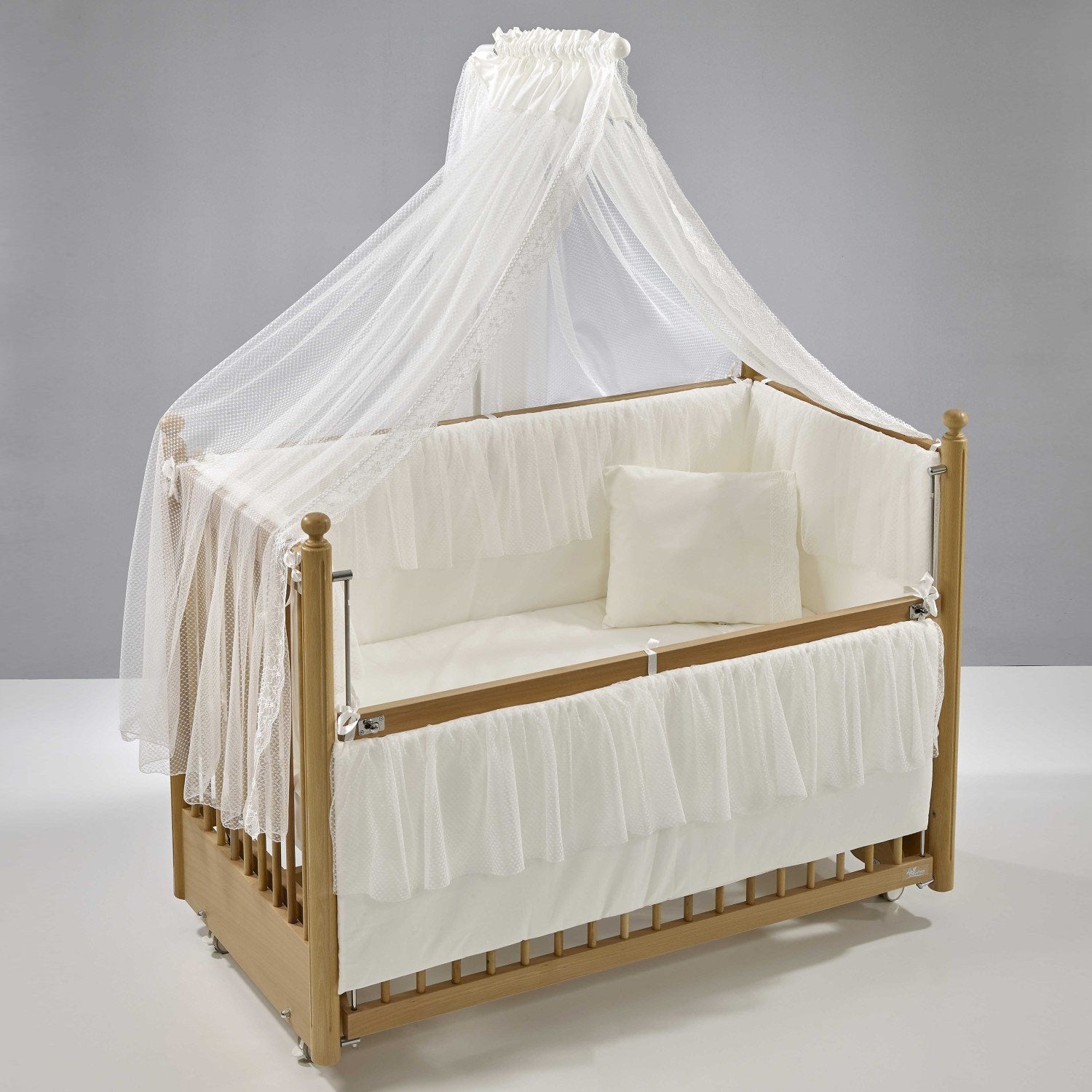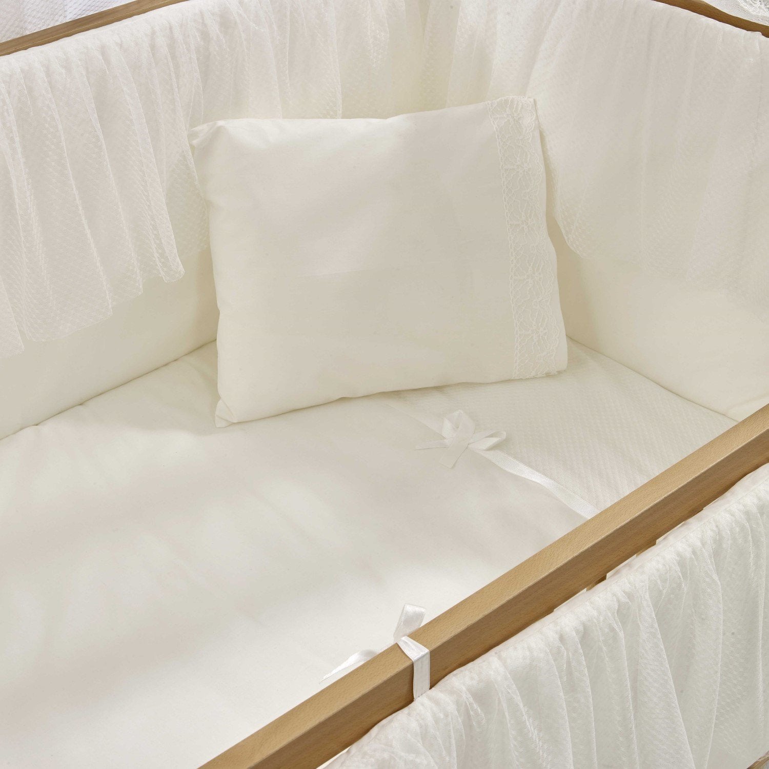 Naturel MDF Beşik + Yatak + Ekru Uyku Seti + Cibinlik Seti
