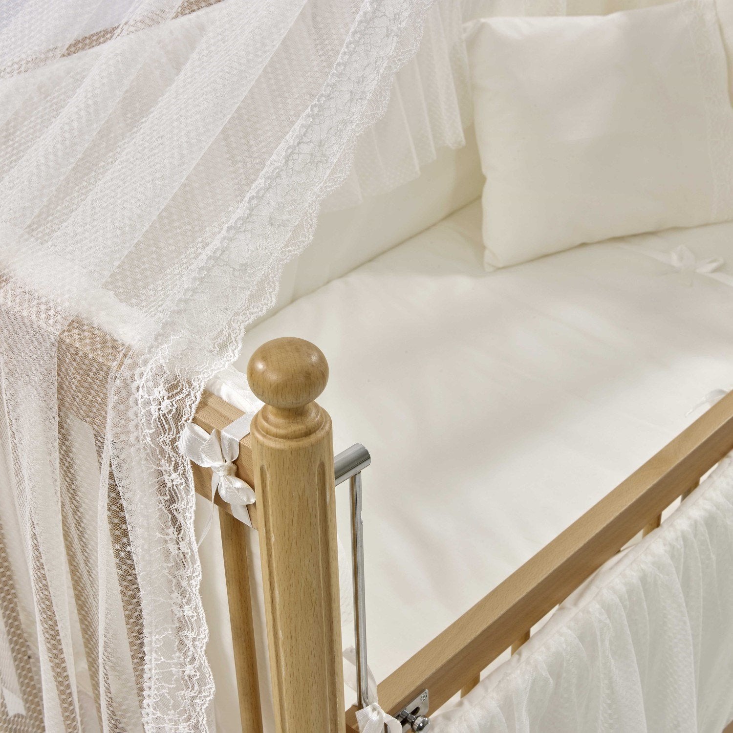 Mondo Anne Yanı Ahşap Sallanır Beşik 60x120 cm (naturel-ekru)