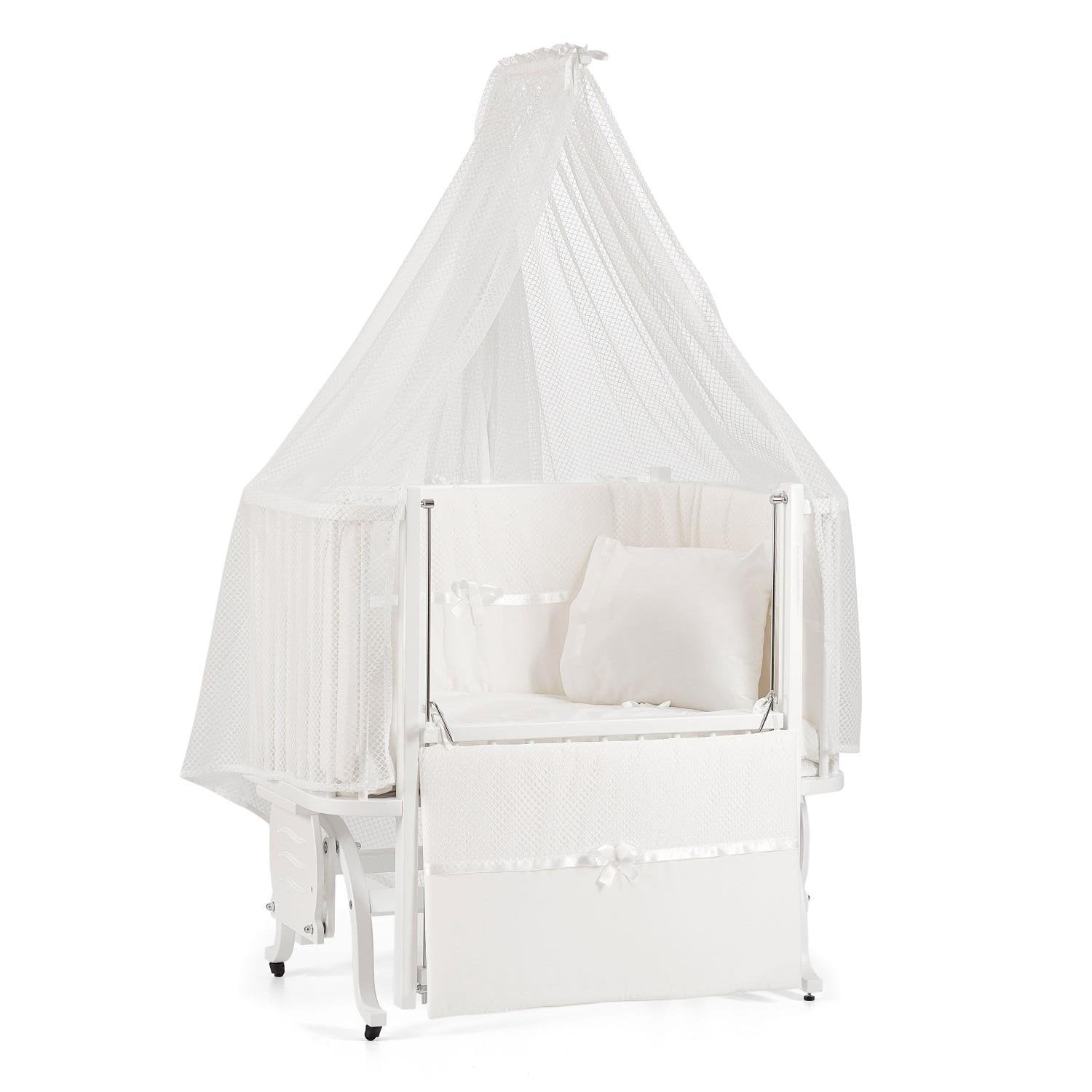 Beyaz MDF Beşik + Yatak + Ekru Uyku Seti + Cibinlik Seti