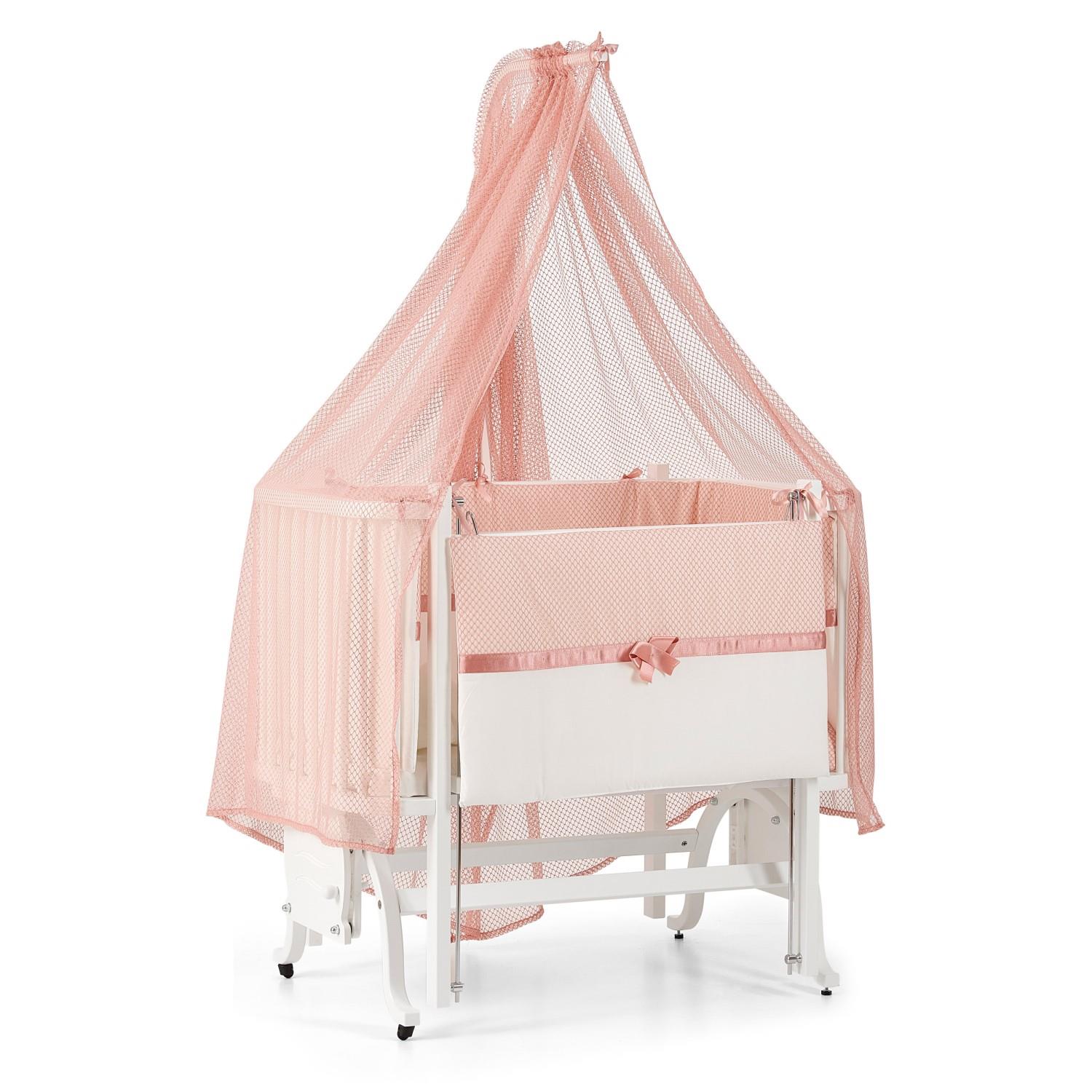 Mood Anne Yanı Ahşap Sallanır Beşik 50x90 cm (beyaz-pembe)