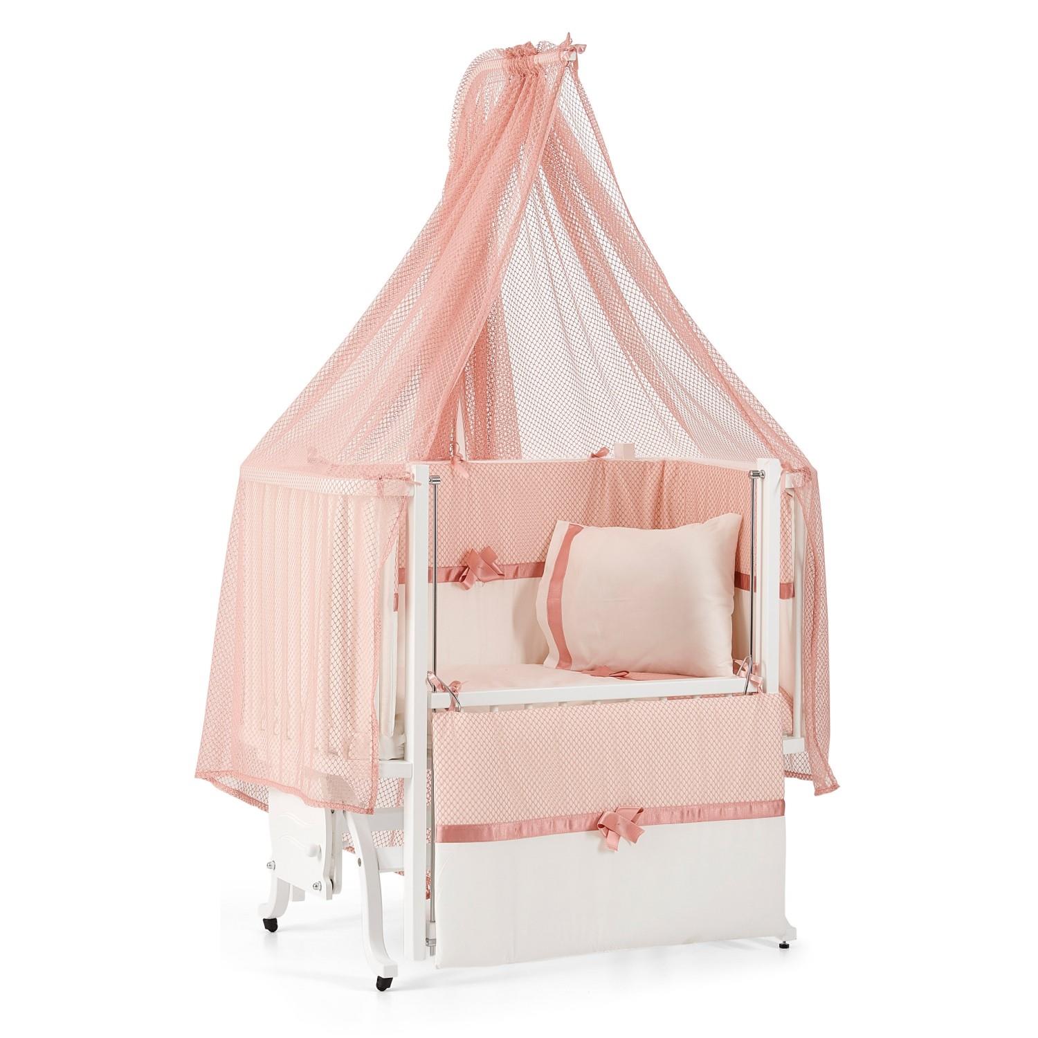 Beyaz MDF Beşik + Yatak + Pembe Uyku Seti + Cibinlik Seti