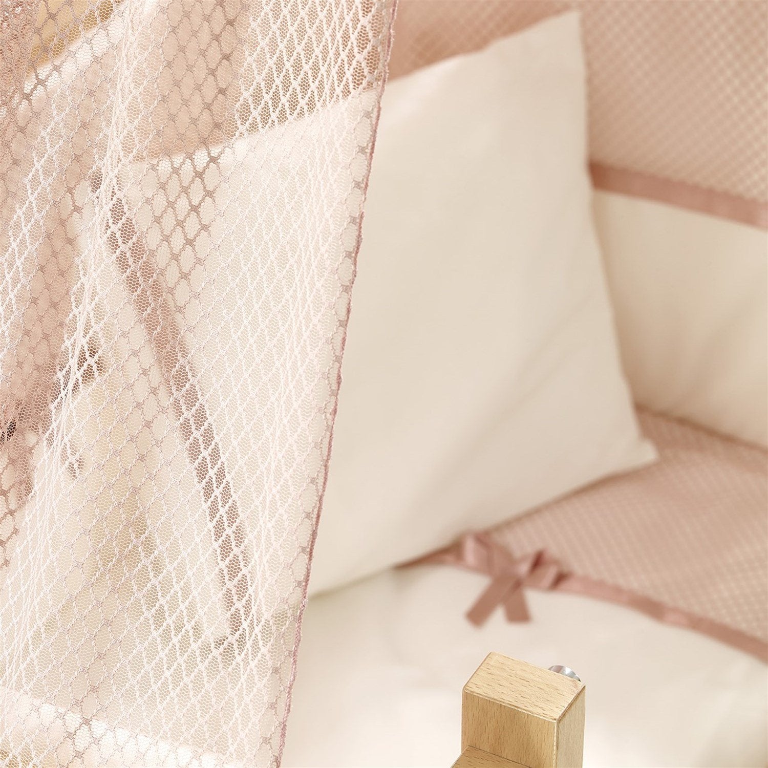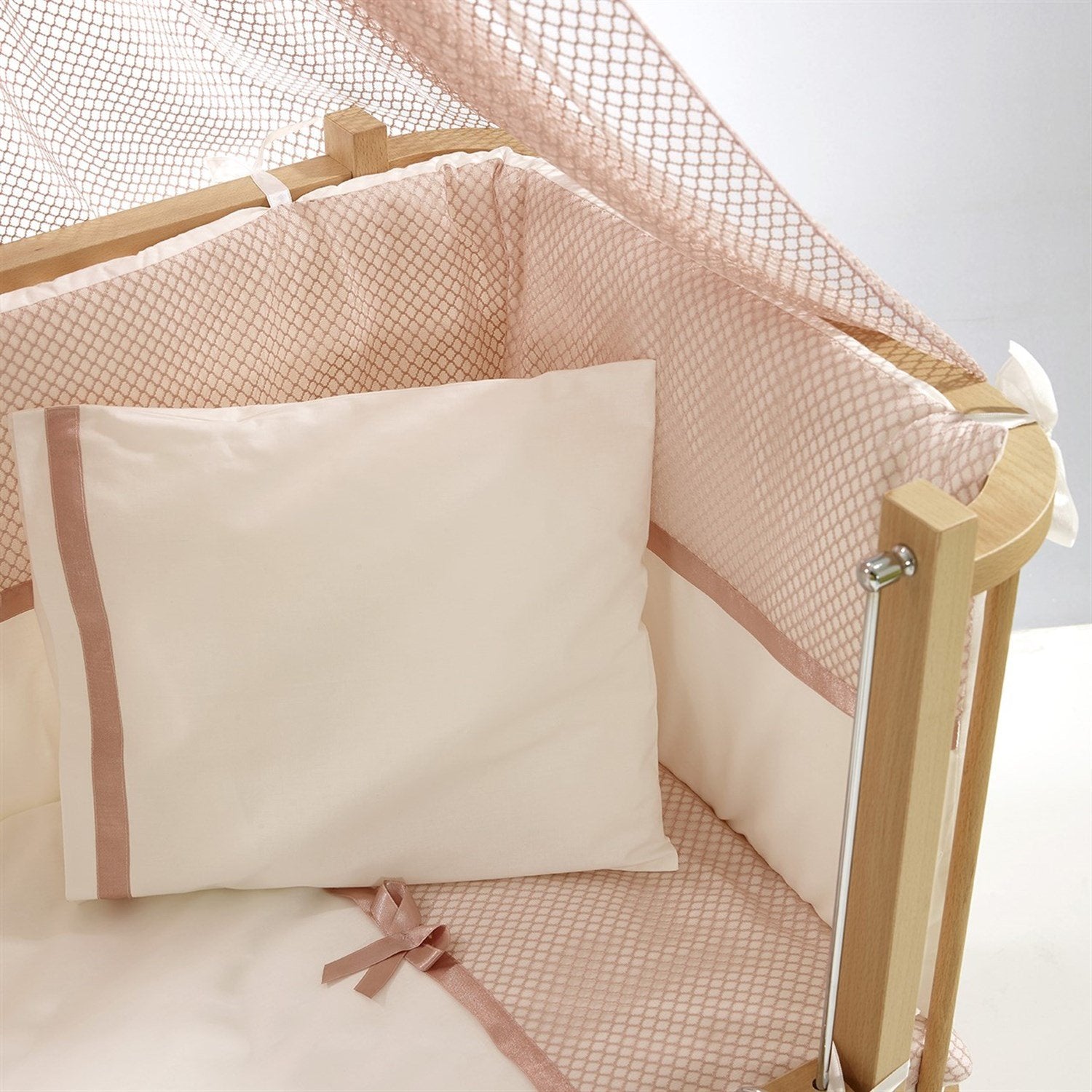 Naturel MDF Beşik + Yatak + Pembe Uyku Seti + Cibinlik Seti