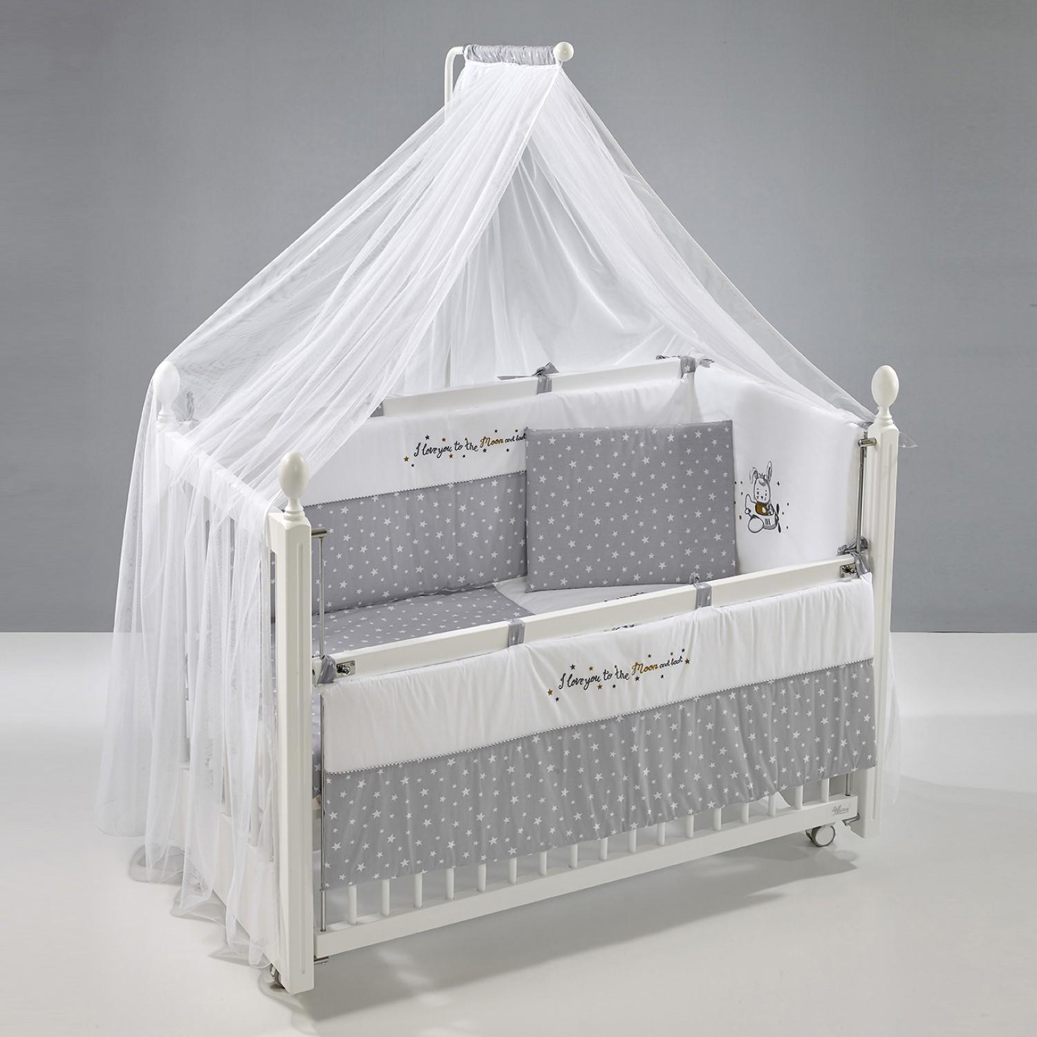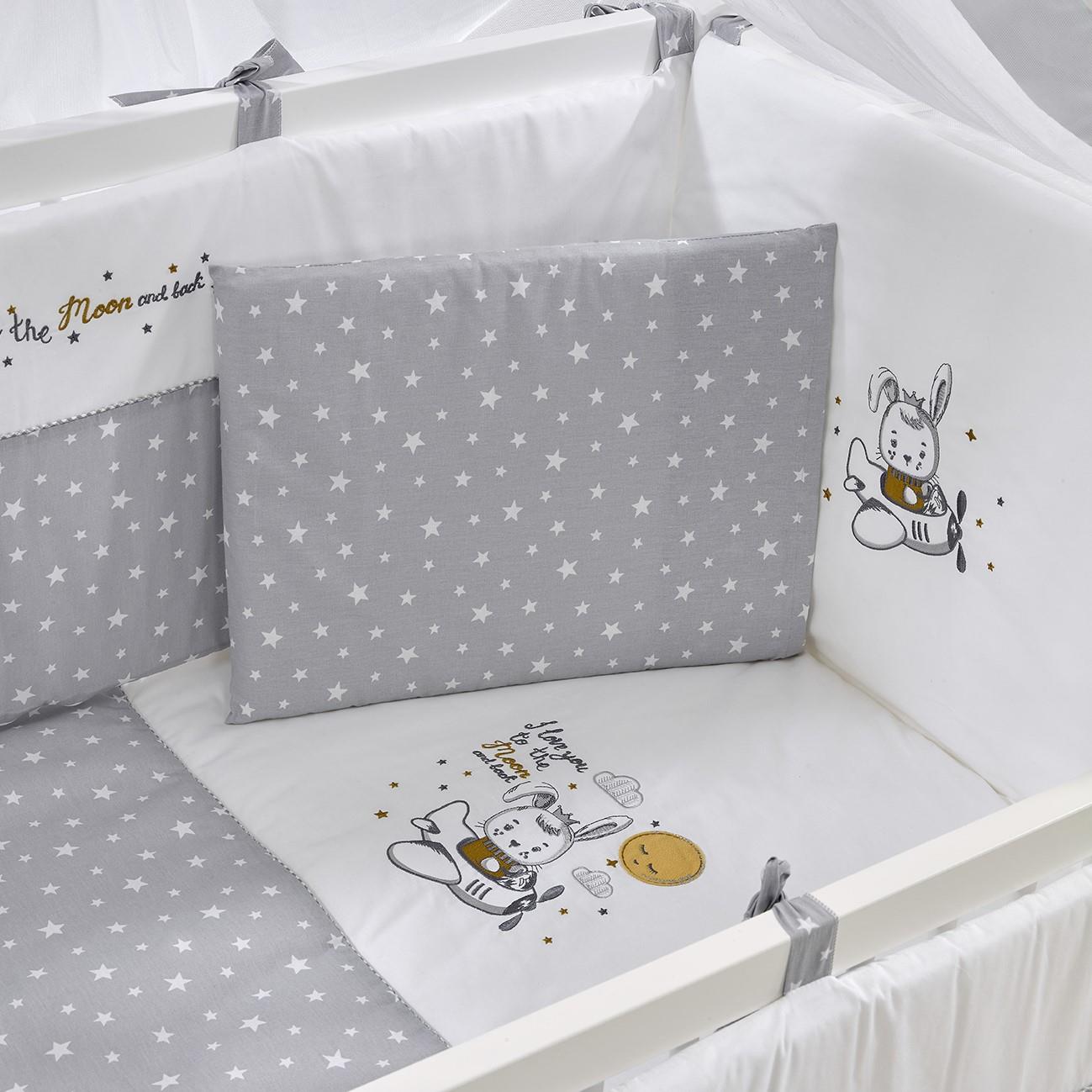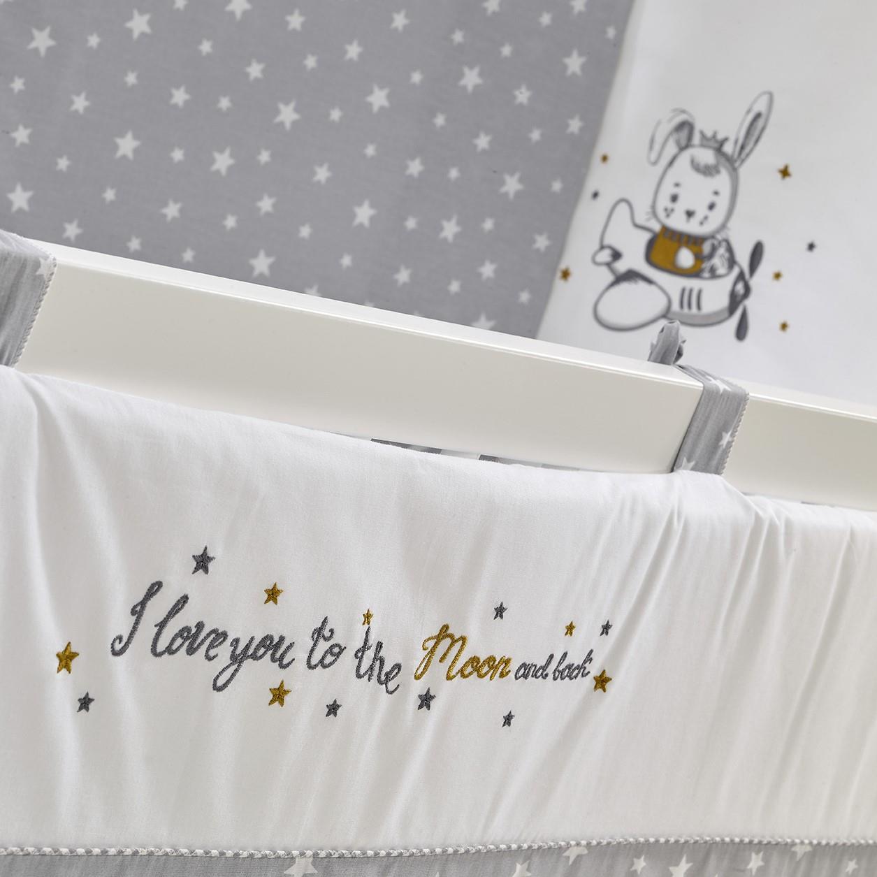 Moon Gri Nakışlı Pamuklu Bebek Uyku Seti 60x120 cm