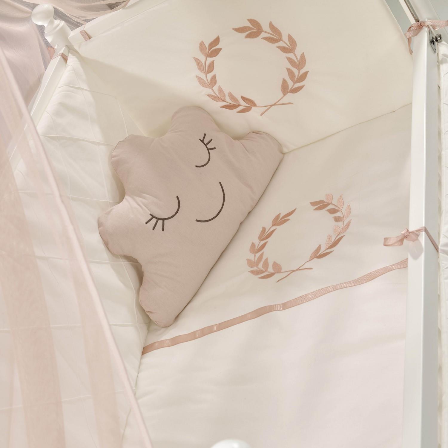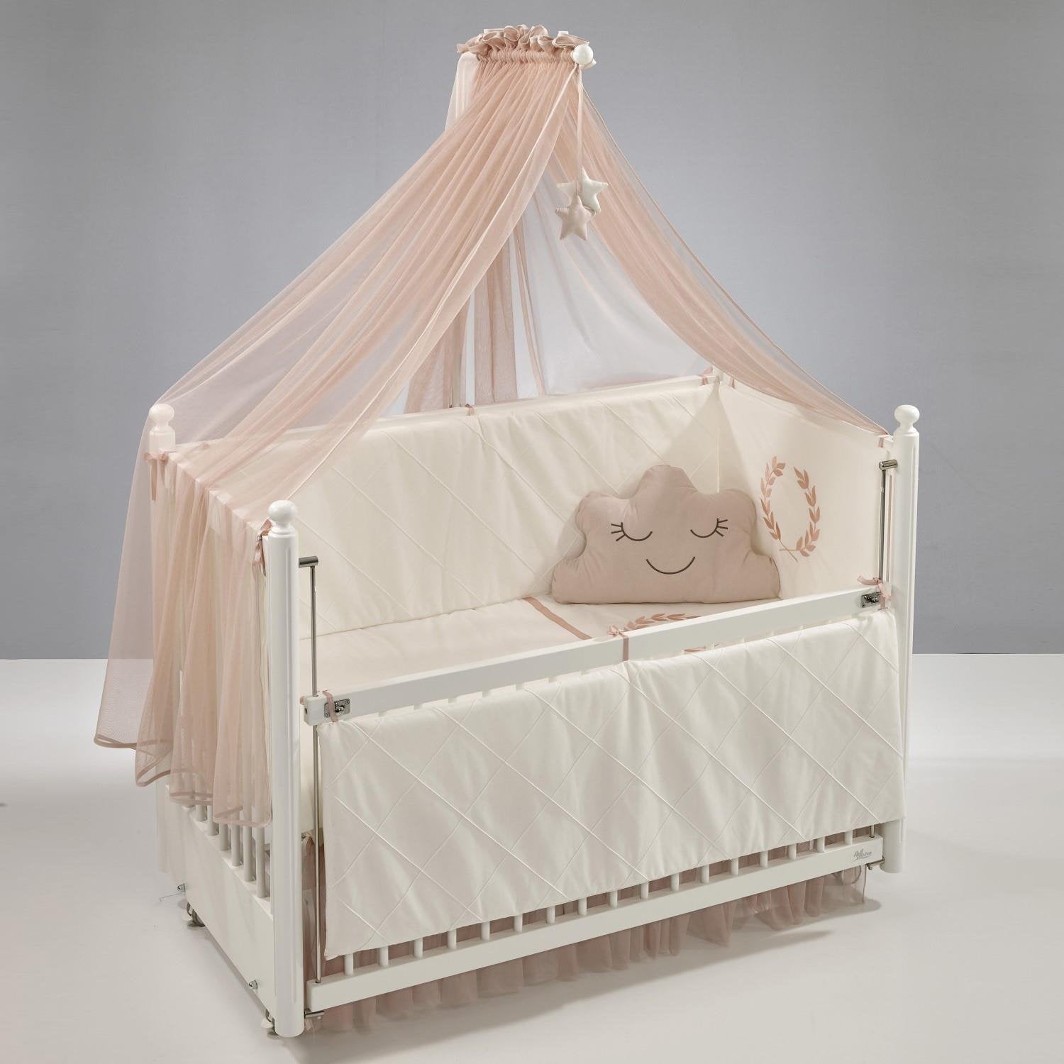* Set içeriği 9 parçadan oluşmaktadır: 1 adet yorgan, 1 adet çarşaf, 1 adet bulut yastık, 2 adet fermuarlı kısa kenar koruma, 2 adet fermuarlı uzun kenar koruma, 1 adet cibinlik, 1 adet cibinlik aparatı
