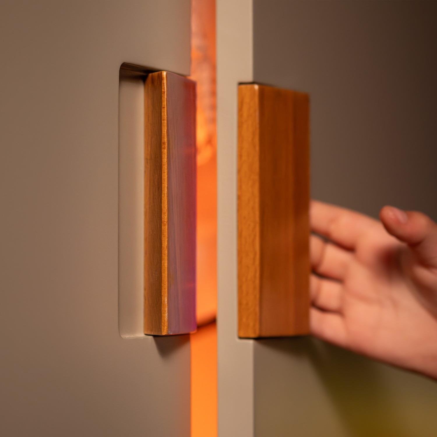 * İşçilik gerektiren ve maliyetli işlemlerle üretilen doğal kayın kaplı 18 ve 30 mm’lik MDF paneller ise mat vernik ile renklendirilmiş ve cilalanmıştır