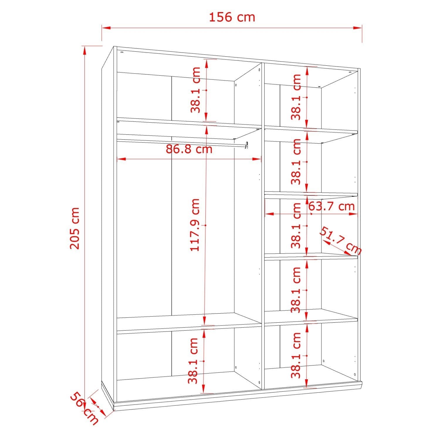 * Ölçüler: Genişlik:156 cm | Derinlik:56 cm | Yükseklik:205 cm