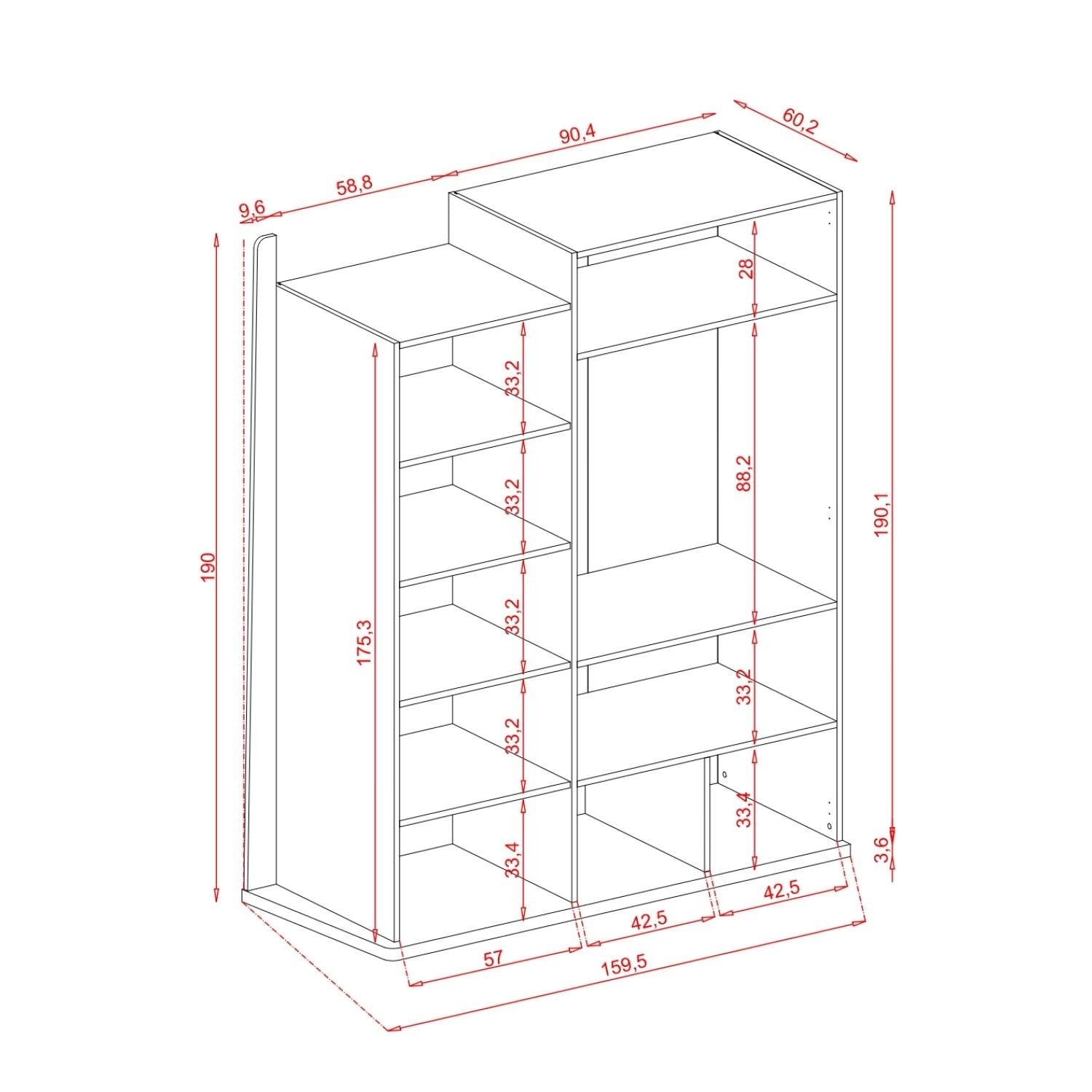 * Ölçüler: Genişlik:160 cm | Derinlik:61 cm | Yükseklik:194 cm