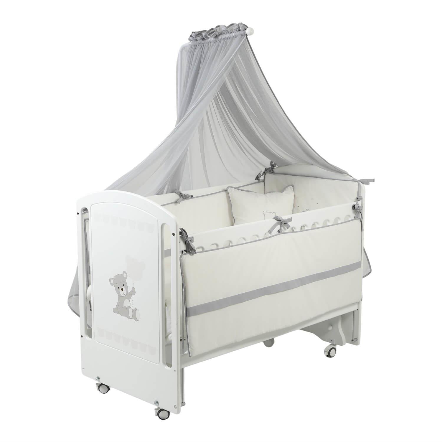 Sweet Bear Anne Yanı Ahşap Sallanır Beşik 60x120 cm (beyaz-bear)