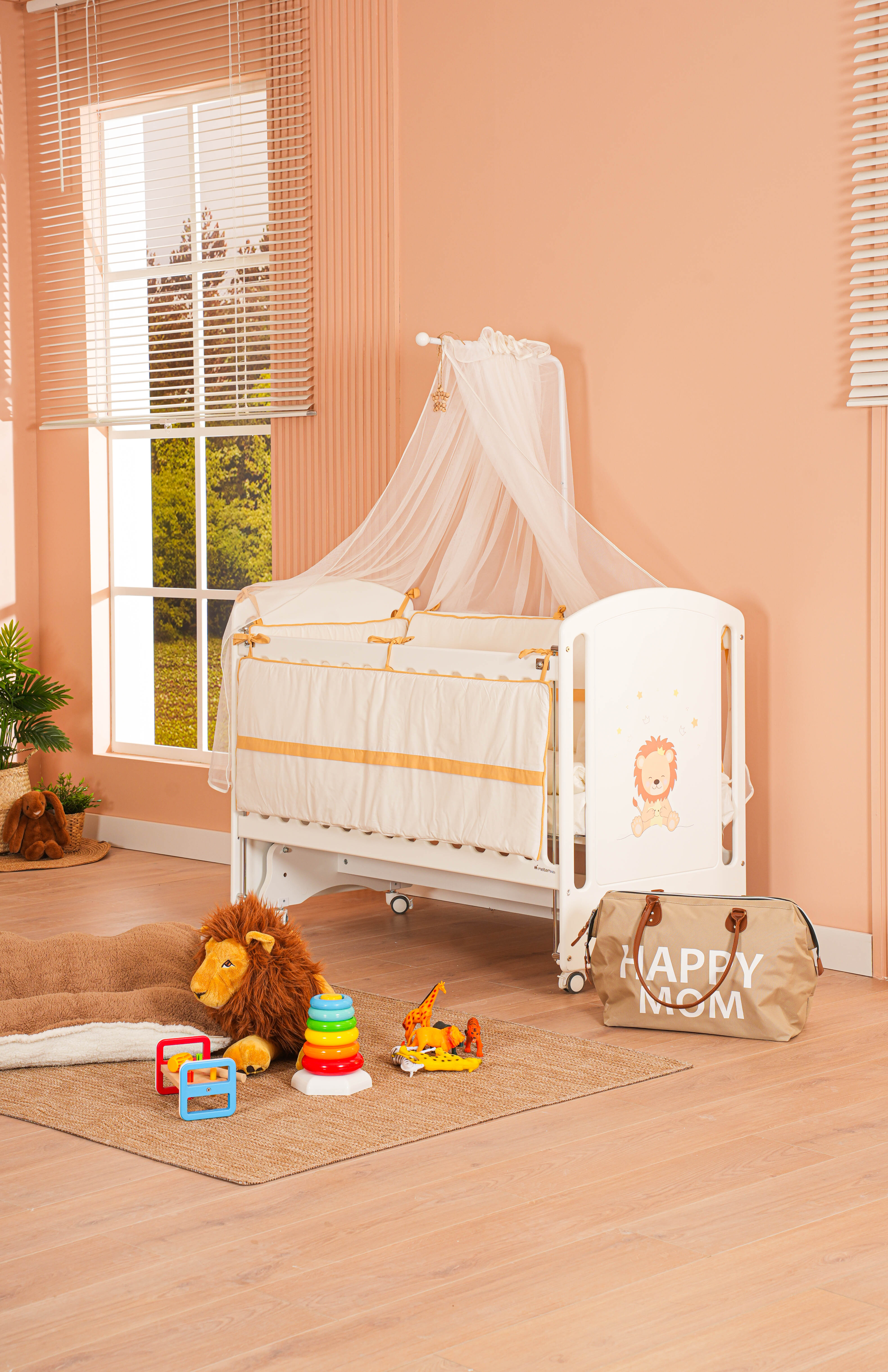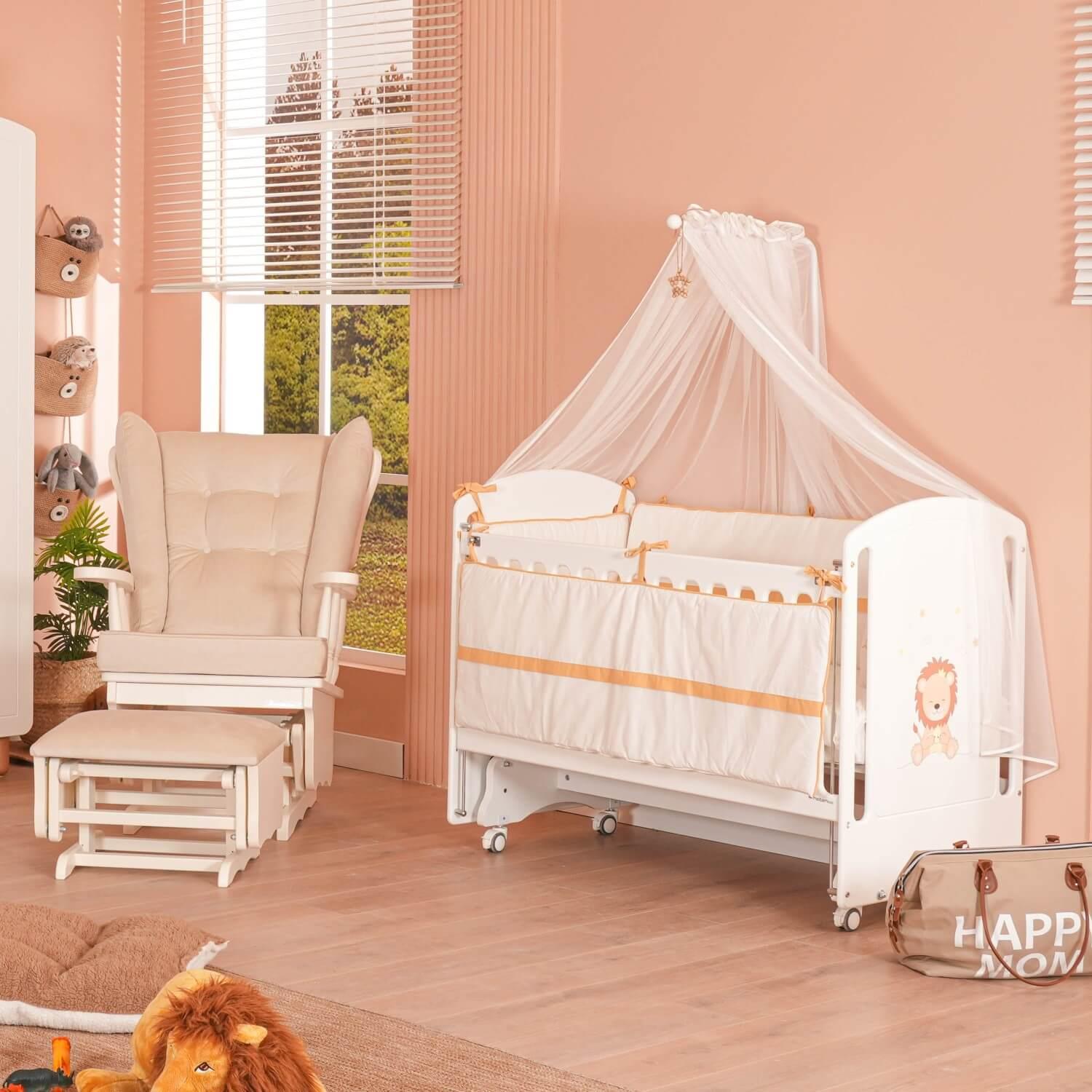 MeltemKids Sweet Lion Anne Yanı Ahşap Sallanır Beşik 60x120 cm