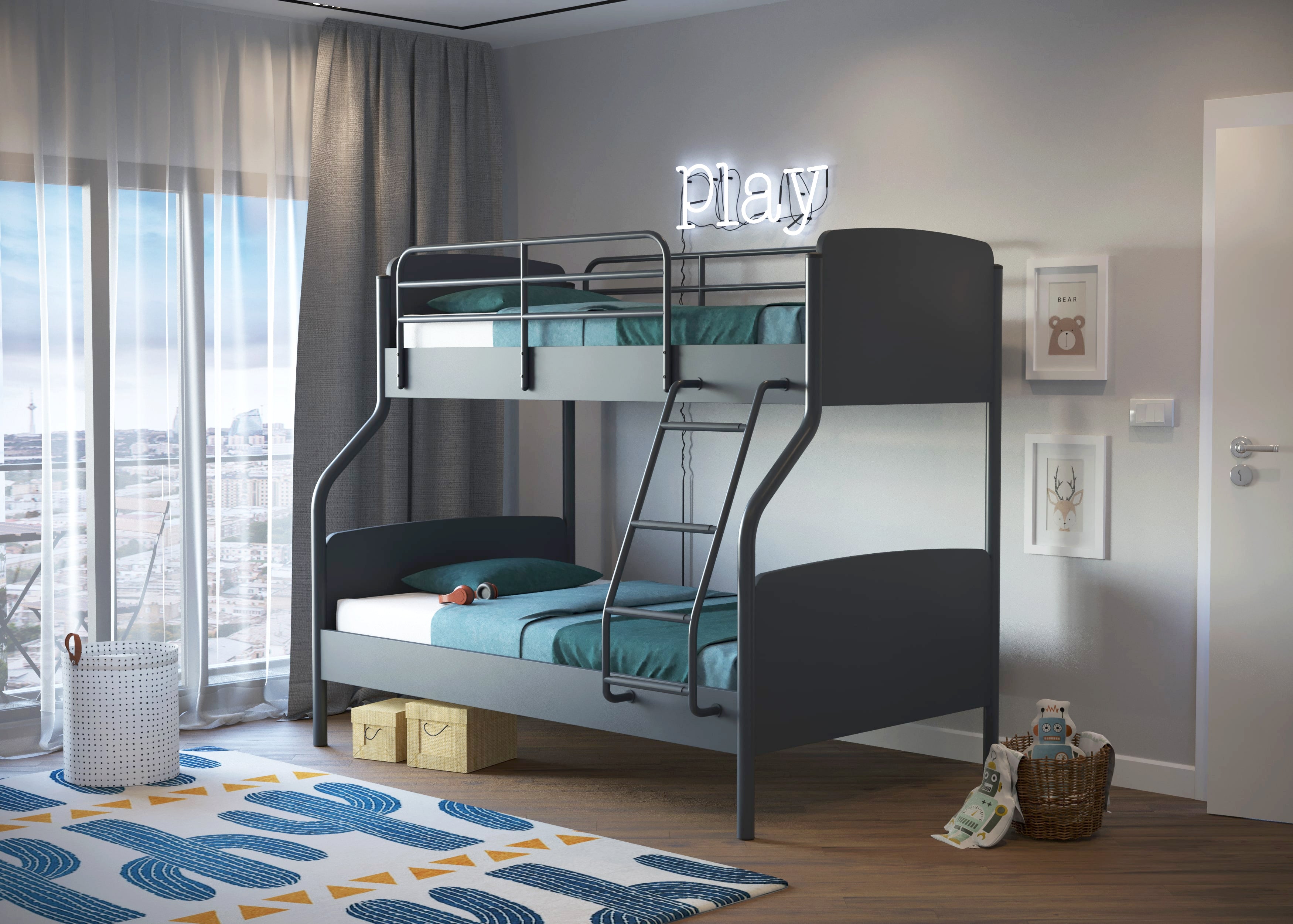 MeltemKids Teddy Antrasit Çocuk & Genç Odası Ranza Karyola 120x200 cm | 90x200 cm