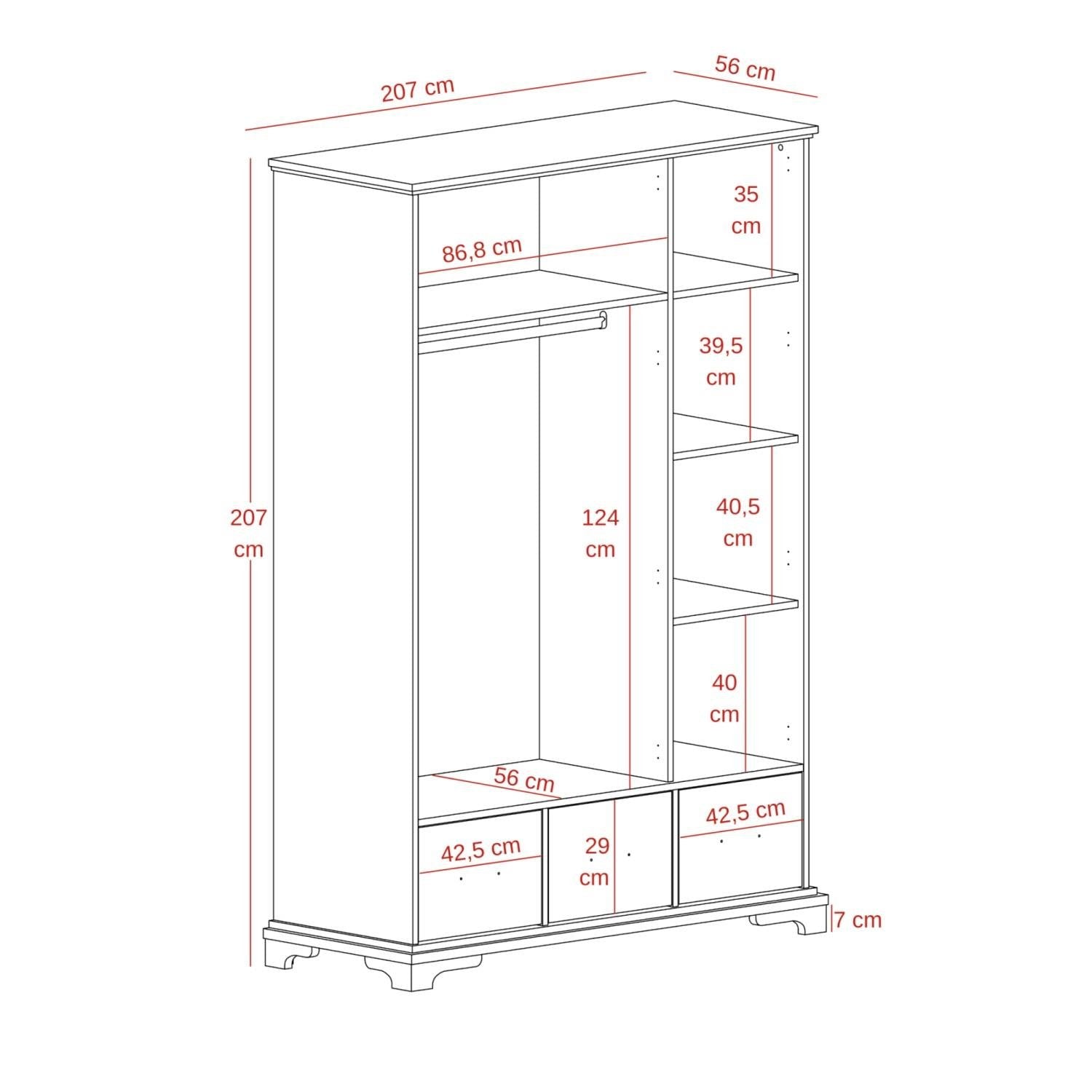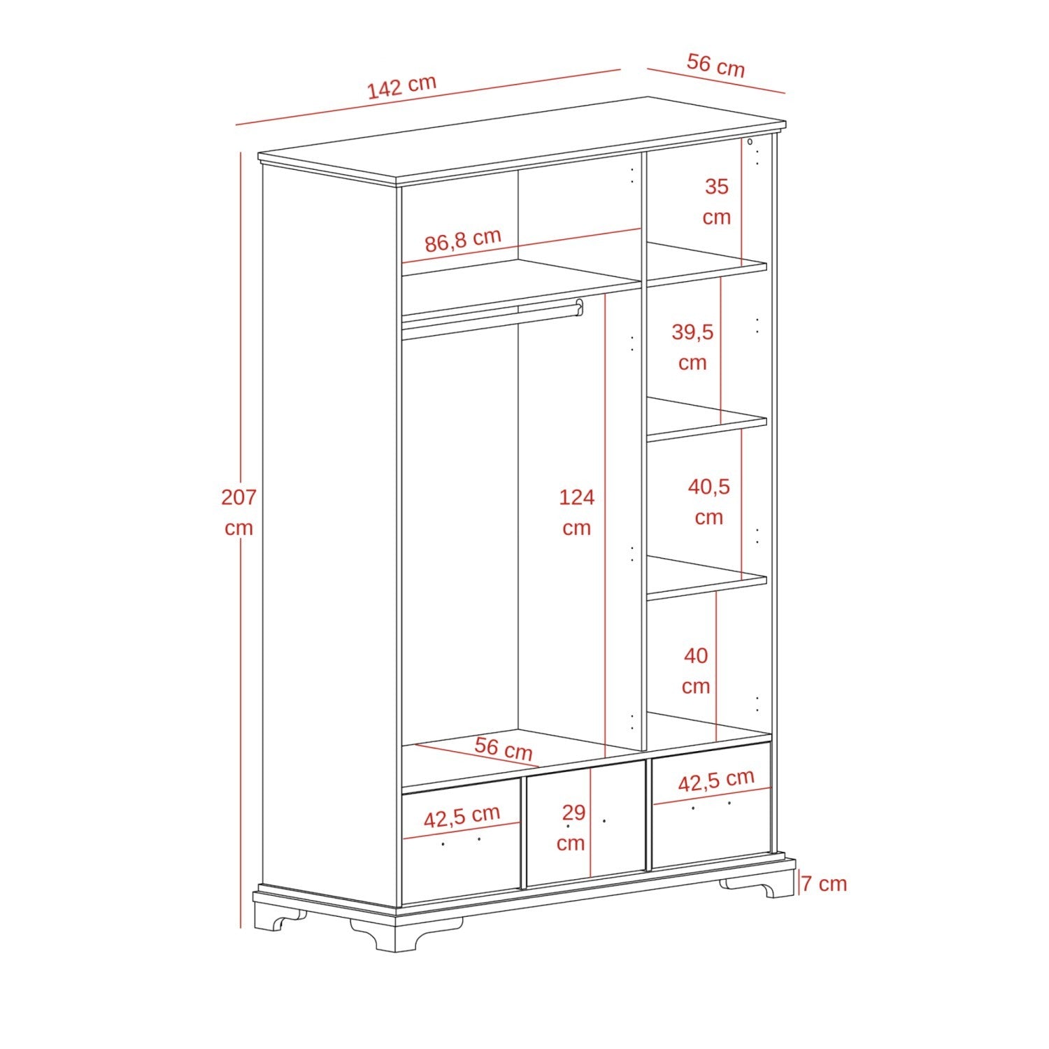 * Ölçüler: Genişlik:142 cm | Derinlik:56 cm | Yükseklik:207 cm