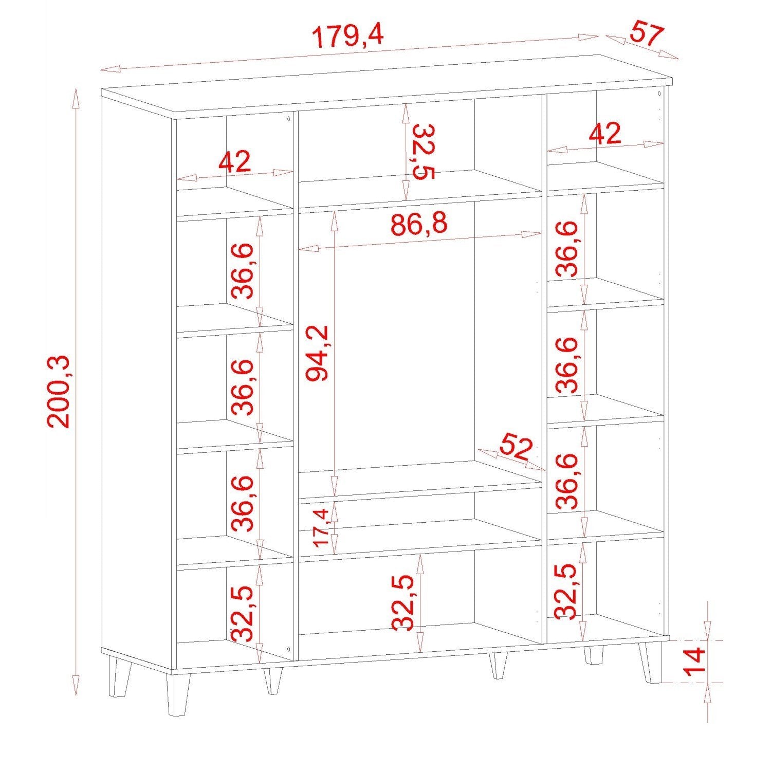 * Ölçüler: Genişlik:180 cm | Derinlik:57 cm | Yükseklik:200 cm