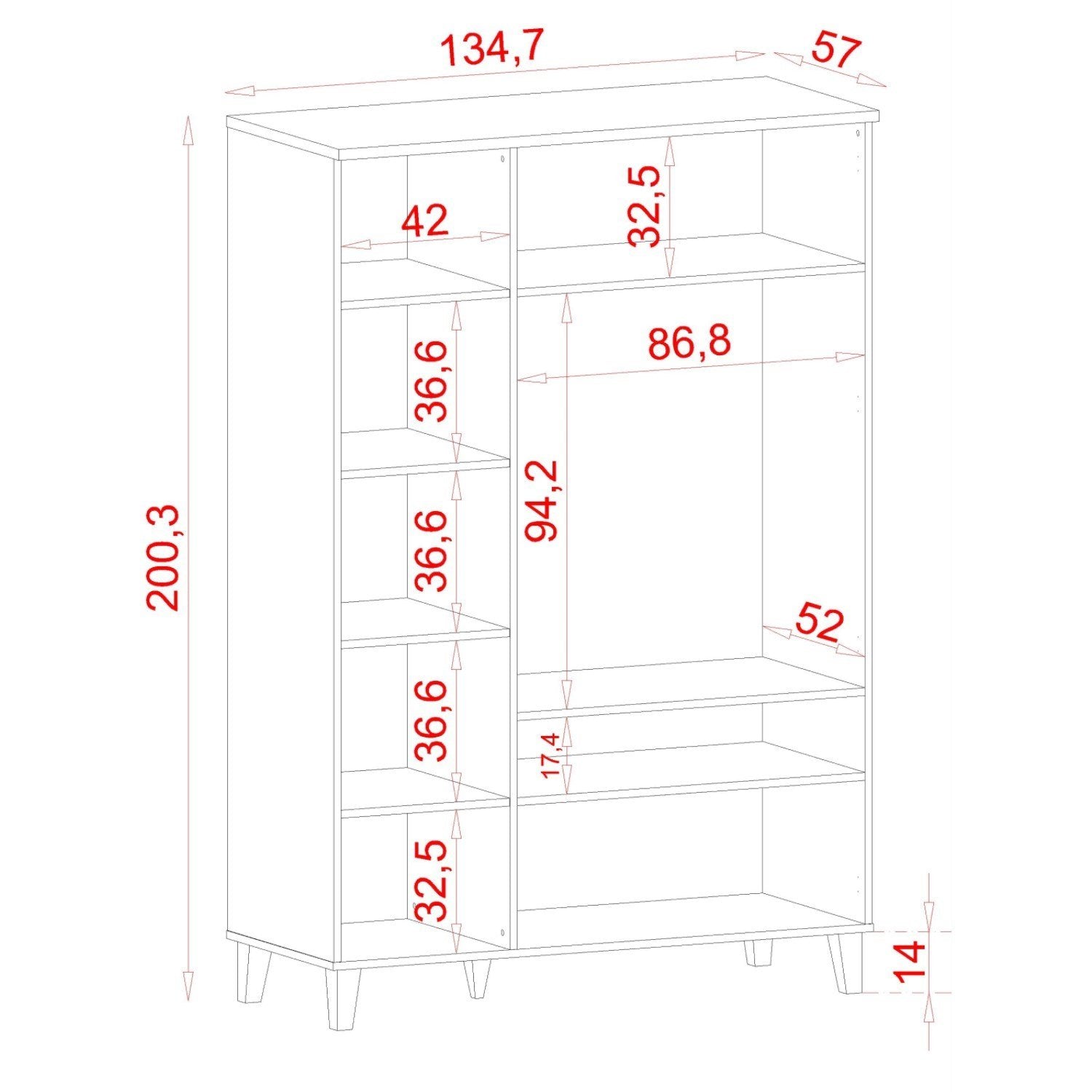 * Ölçüler: Genişlik:135 cm | Derinlik:57 cm | Yükseklik:200 cm
