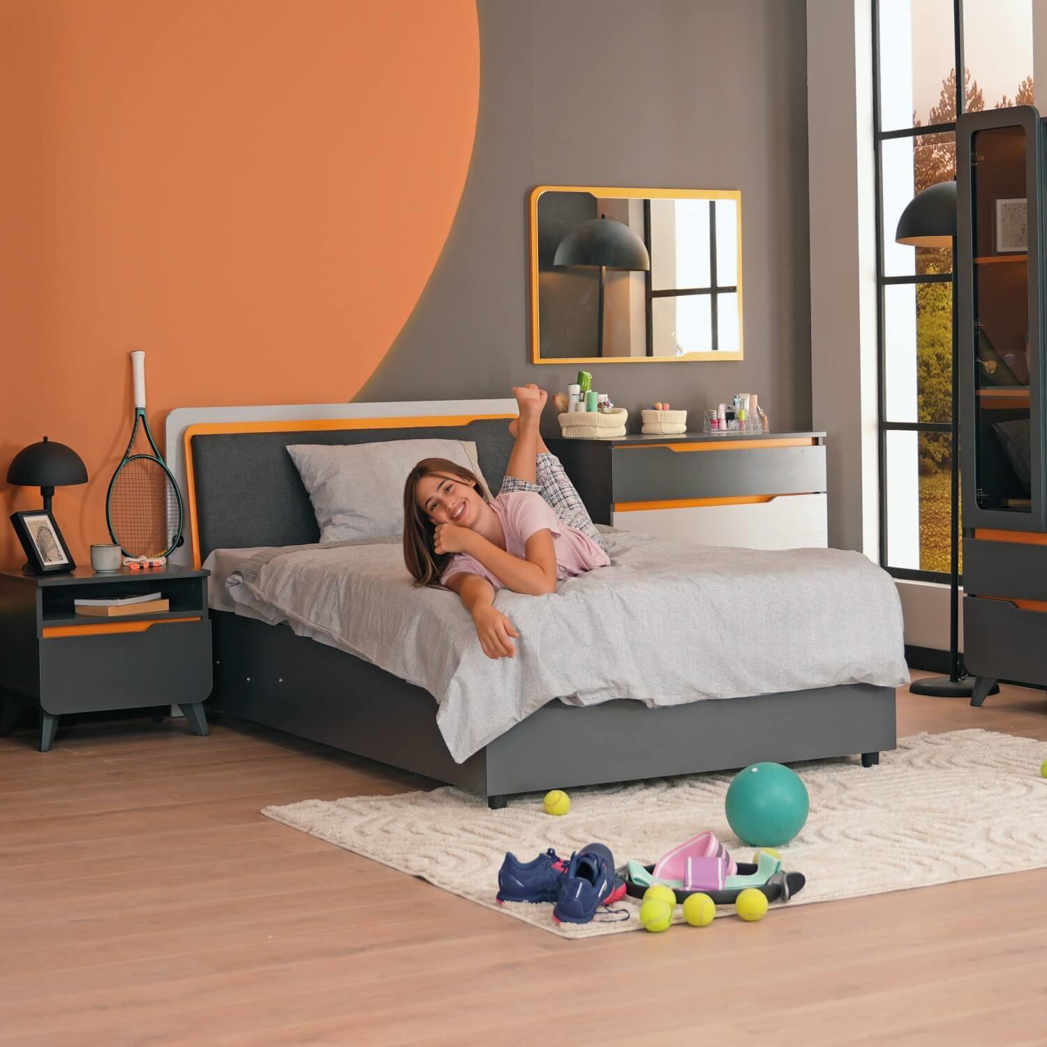 MeltemKids Verona Genç Odası Amortisörlü Bazalı Tek Kişilik Karyola 120x200 cm