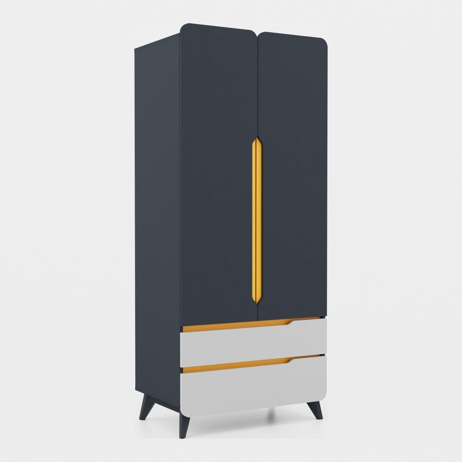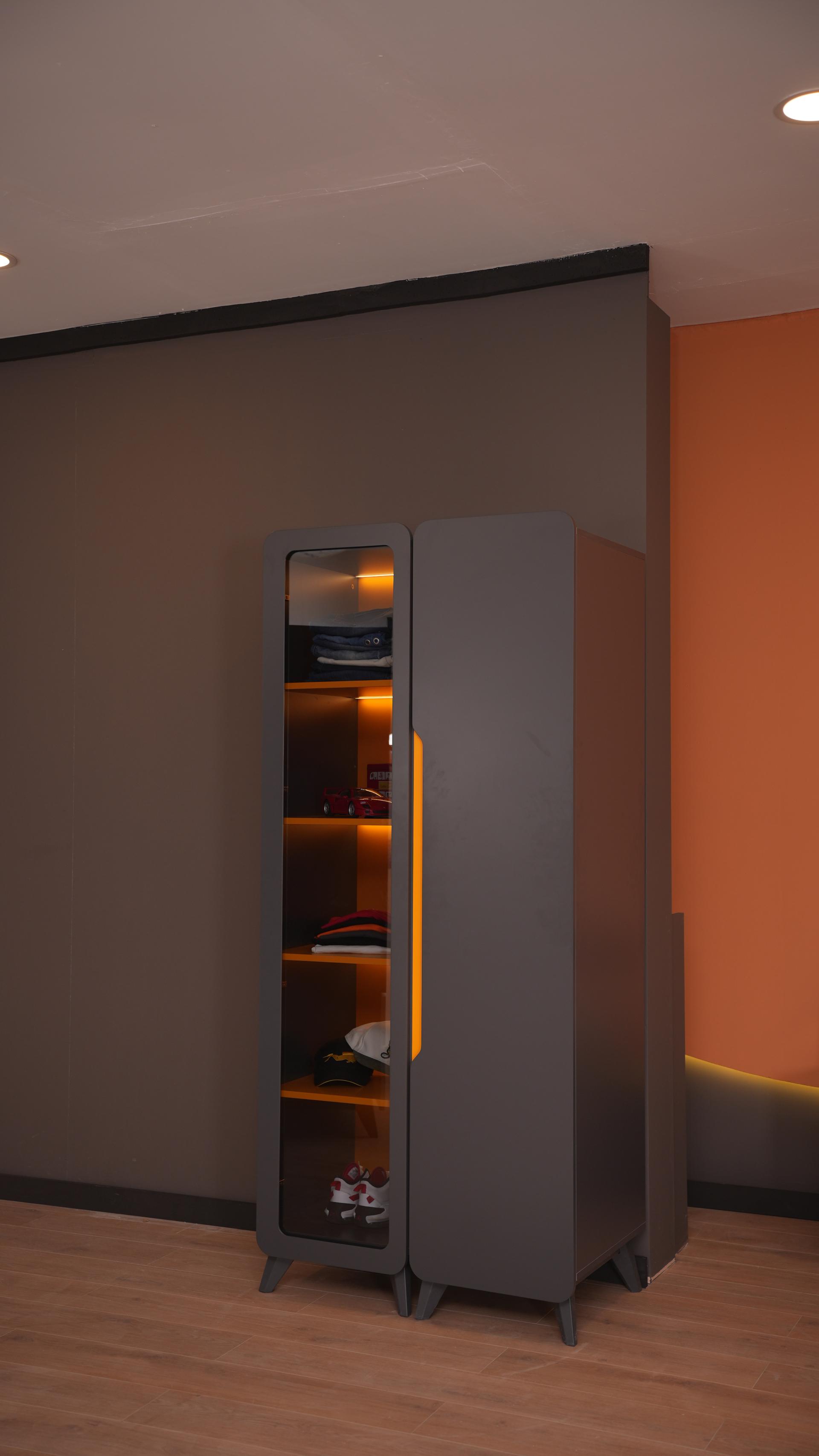 Genç odaları için özel tasarlanmış MeltemKids Verona İki Kapaklı Dolap, 18 mm kalınlığında E1 normunda MDFLAM gövde ve lake boyalı turuncu detaylı kapaklarıyla hem dayanıklı hem de estetik bir mobilyadır.